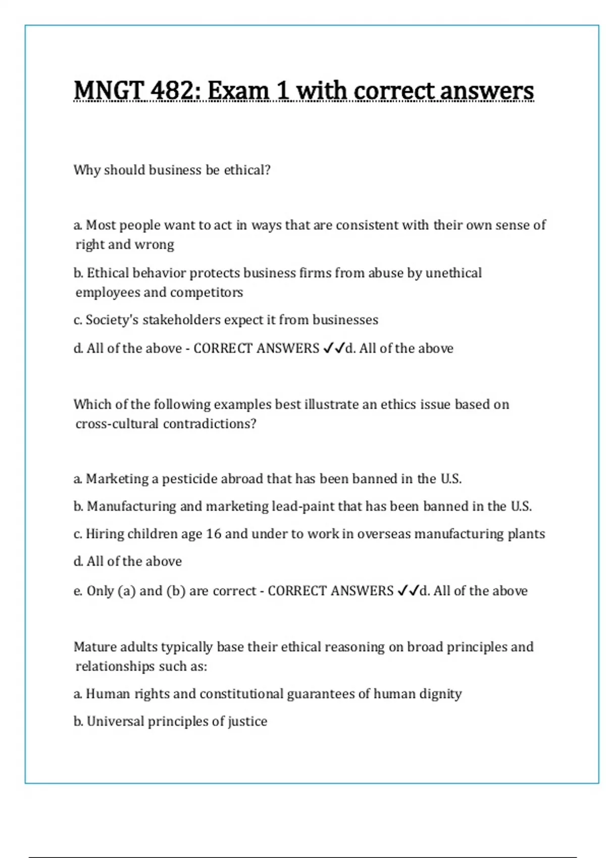 MNGT 482: Exam 1 with correct answers
