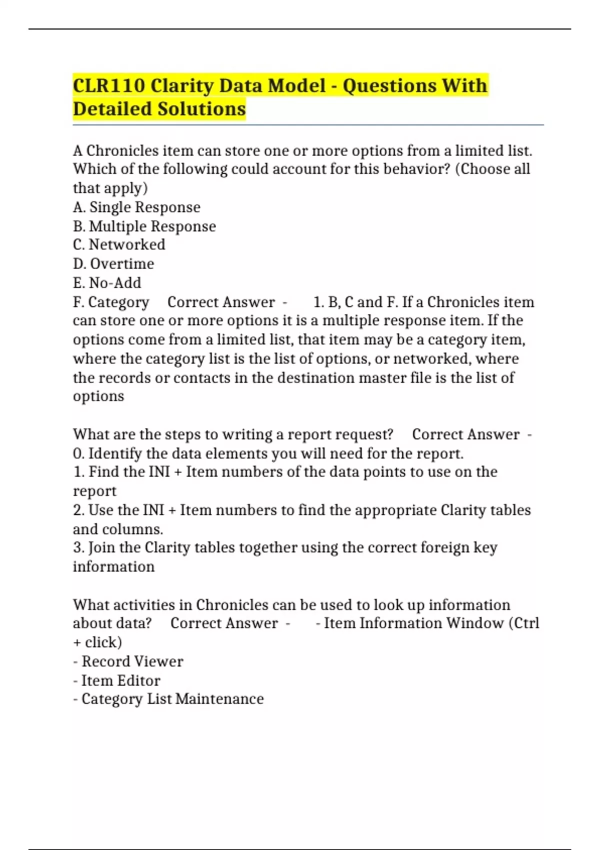 CLR110 Clarity Data Model - Questions With Detailed Solutions