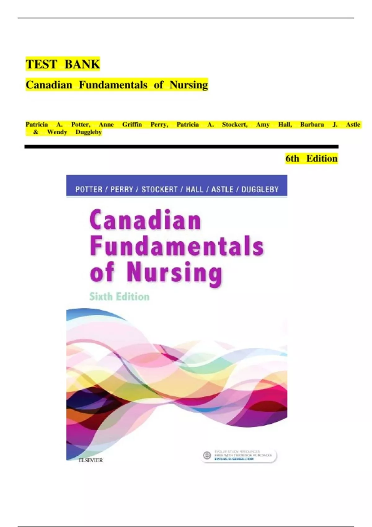 Test Bank for Canadian Fundamentals of Nursing 6th Edition by Potter, All chapters 1-48 (questions & answers) A+ guide.