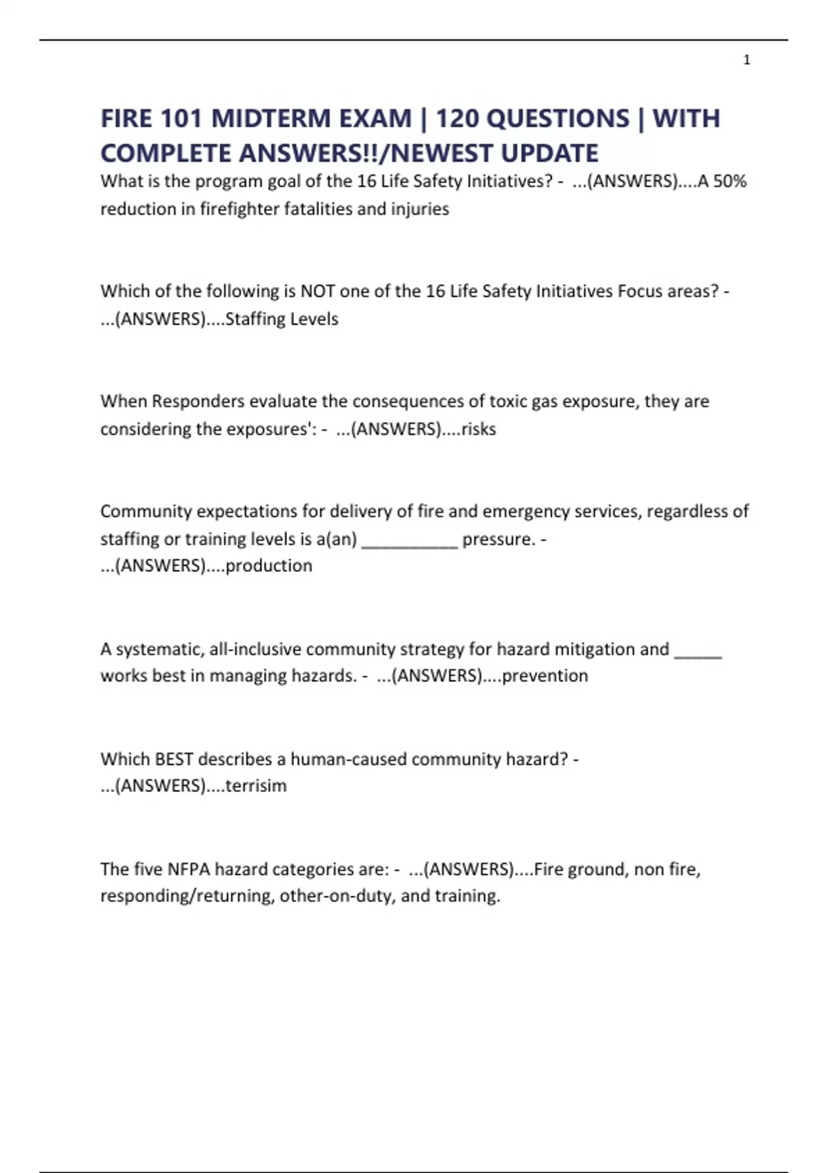 FIRE 101 MIDTERM EXAM | 120 QUESTIONS | WITH