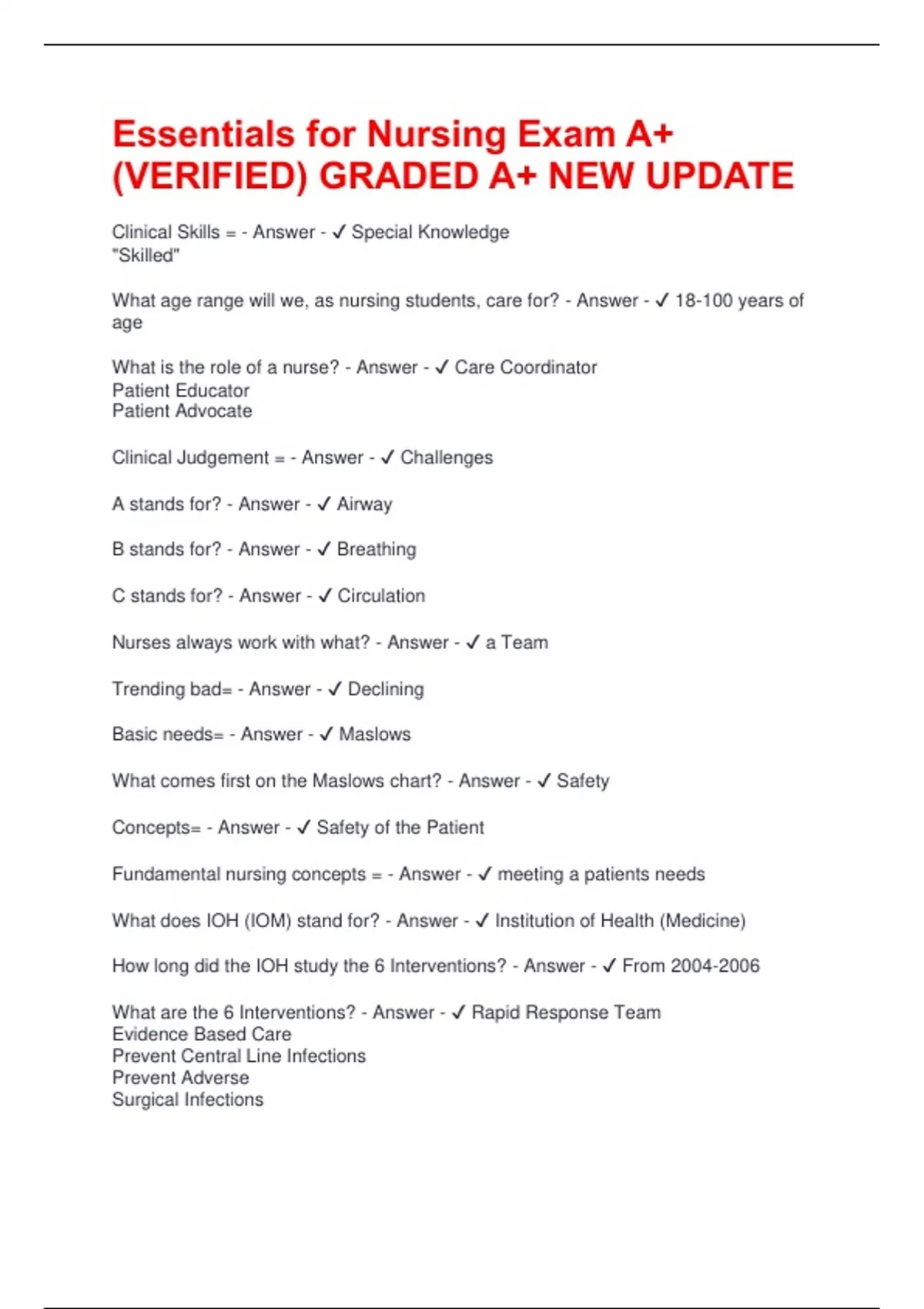 Fundamental nursing concepts = - Answer - ✔ meeting a patients needs