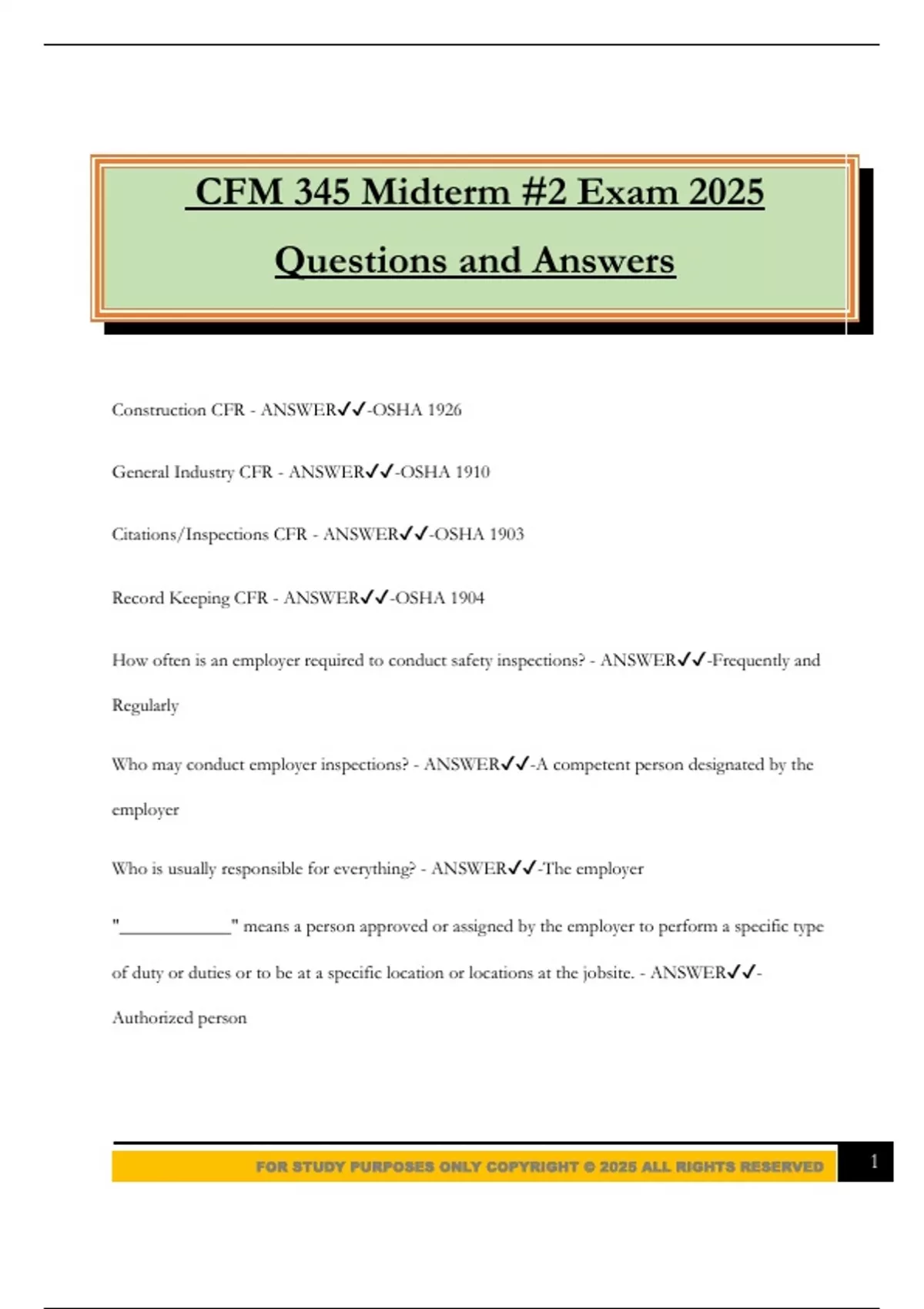 FOR STUDY PURPOSES ONLY COPYRIGHT © 2025 ALL RIGHTS RESERVED 1