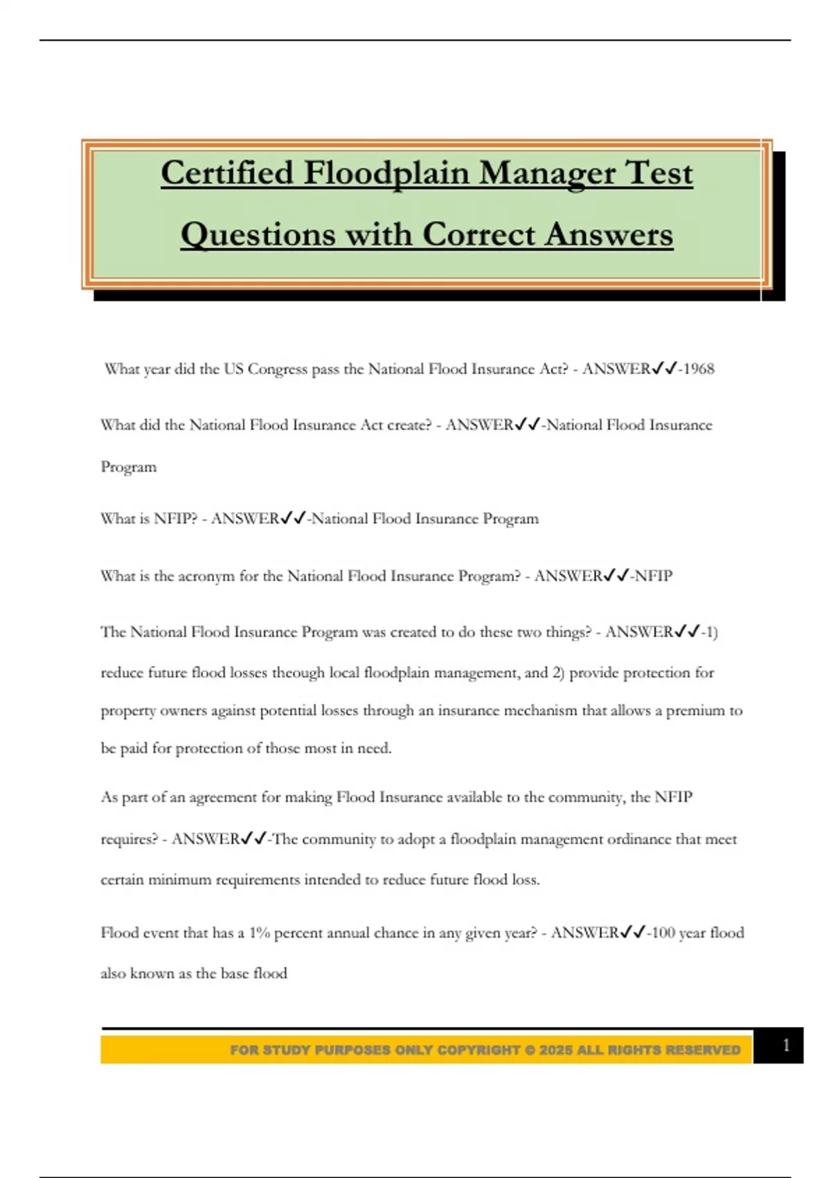 FOR STUDY PURPOSES ONLY COPYRIGHT © 2025 ALL RIGHTS RESERVED 1