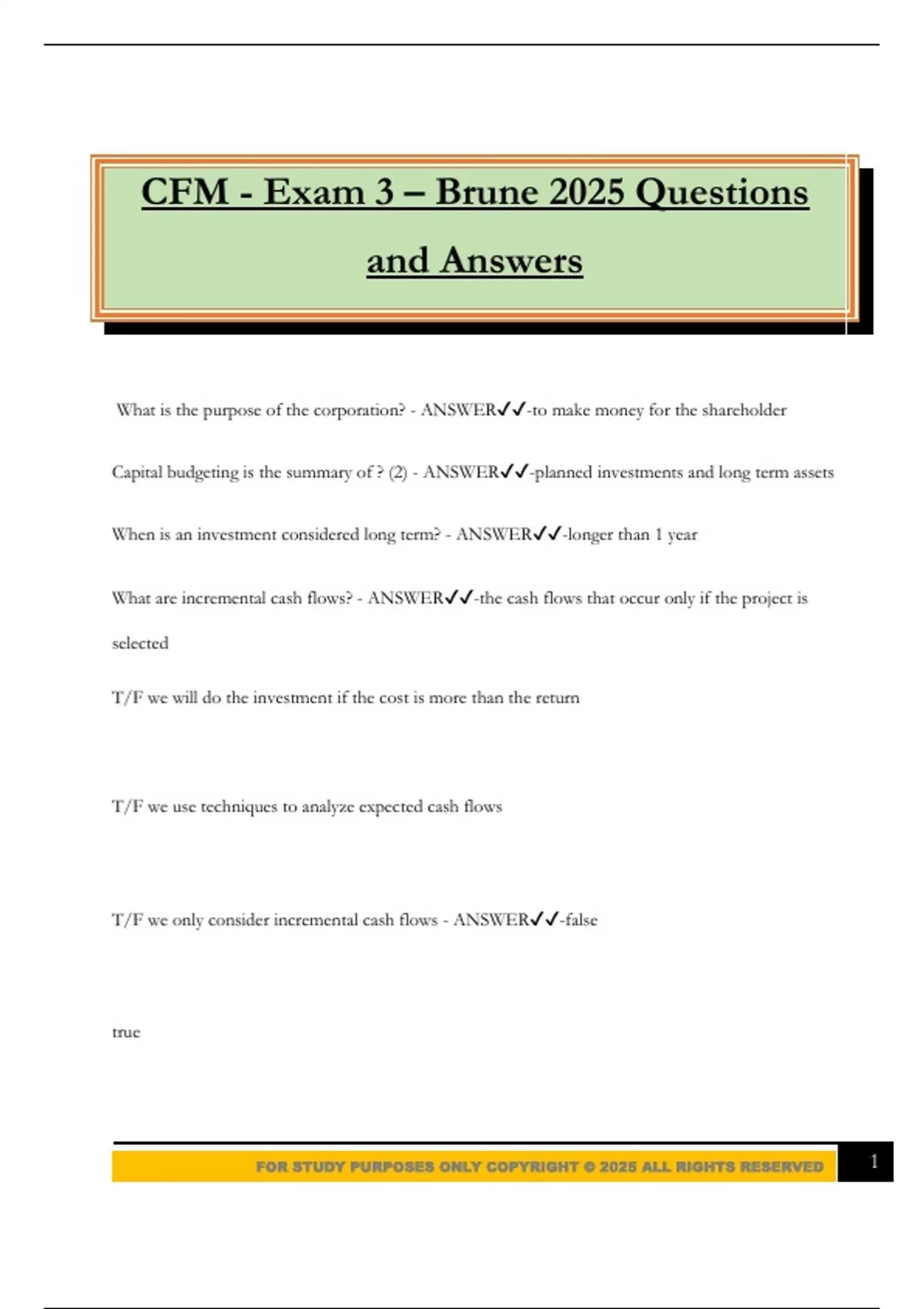 FOR STUDY PURPOSES ONLY COPYRIGHT © 2025 ALL RIGHTS RESERVED 1