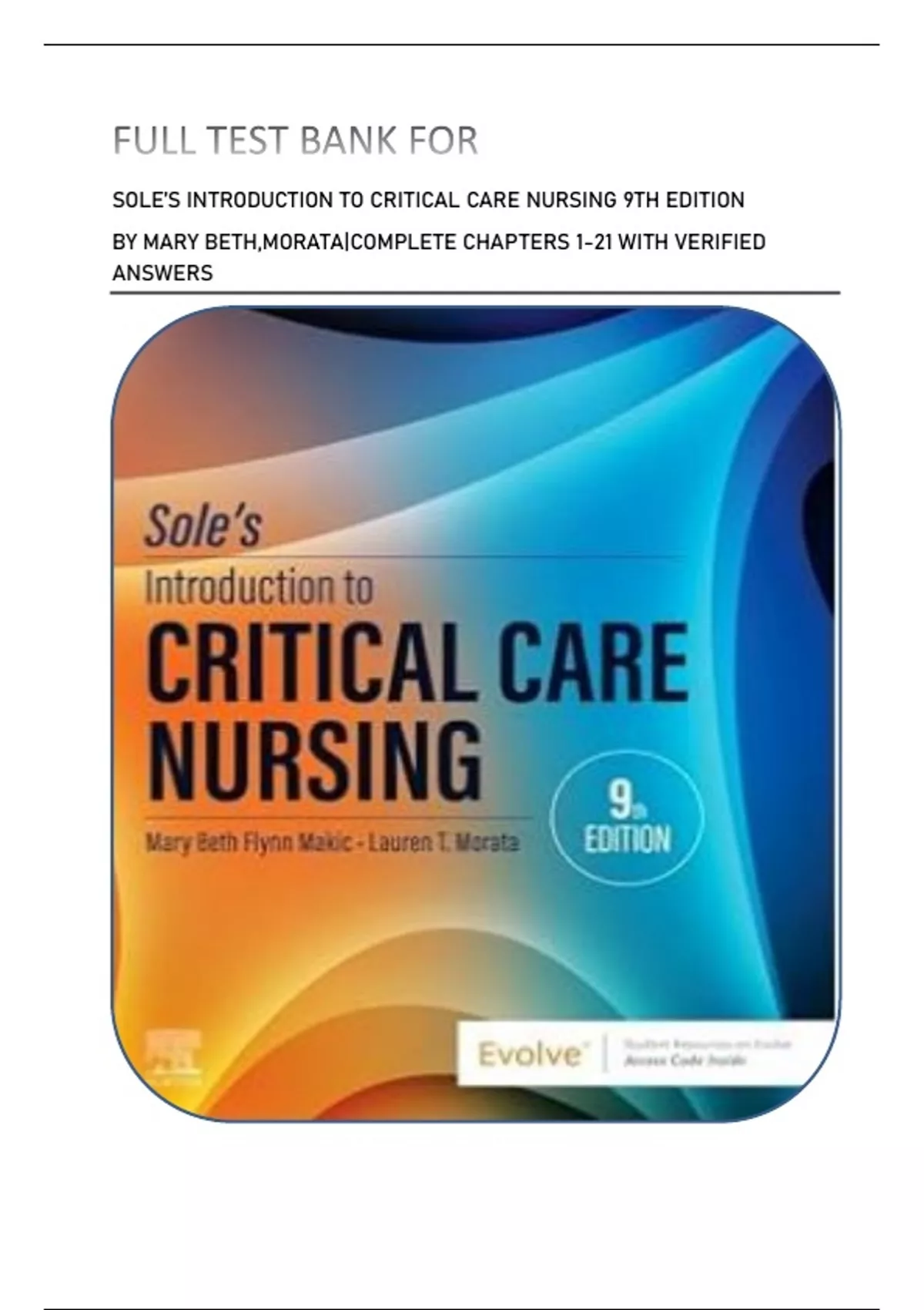 SOLE’S INTRODUCTION TO CRITICAL CARE NURSING 9TH EDITION