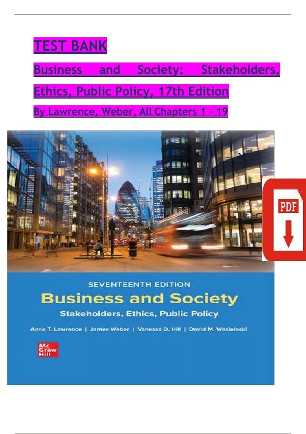 TEST BANK Business and Society: Stakeholders, Ethics, Public Policy, 17th Edition By Lawrence, Weber, All Chapters 1 - 19 complete nrewest version