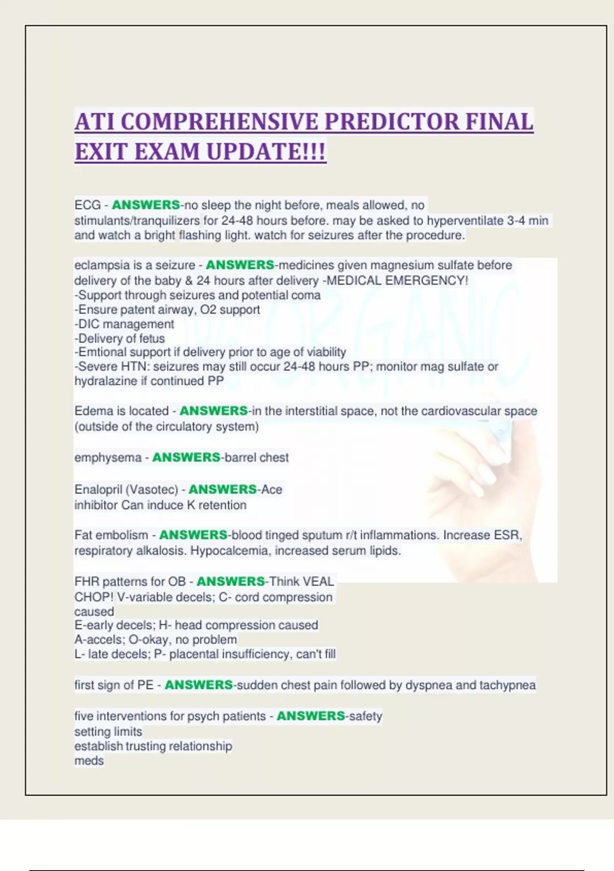 ATI COMPREHENSIVE PREDICTOR FINAL EXIT EXAM UPDATE!!!