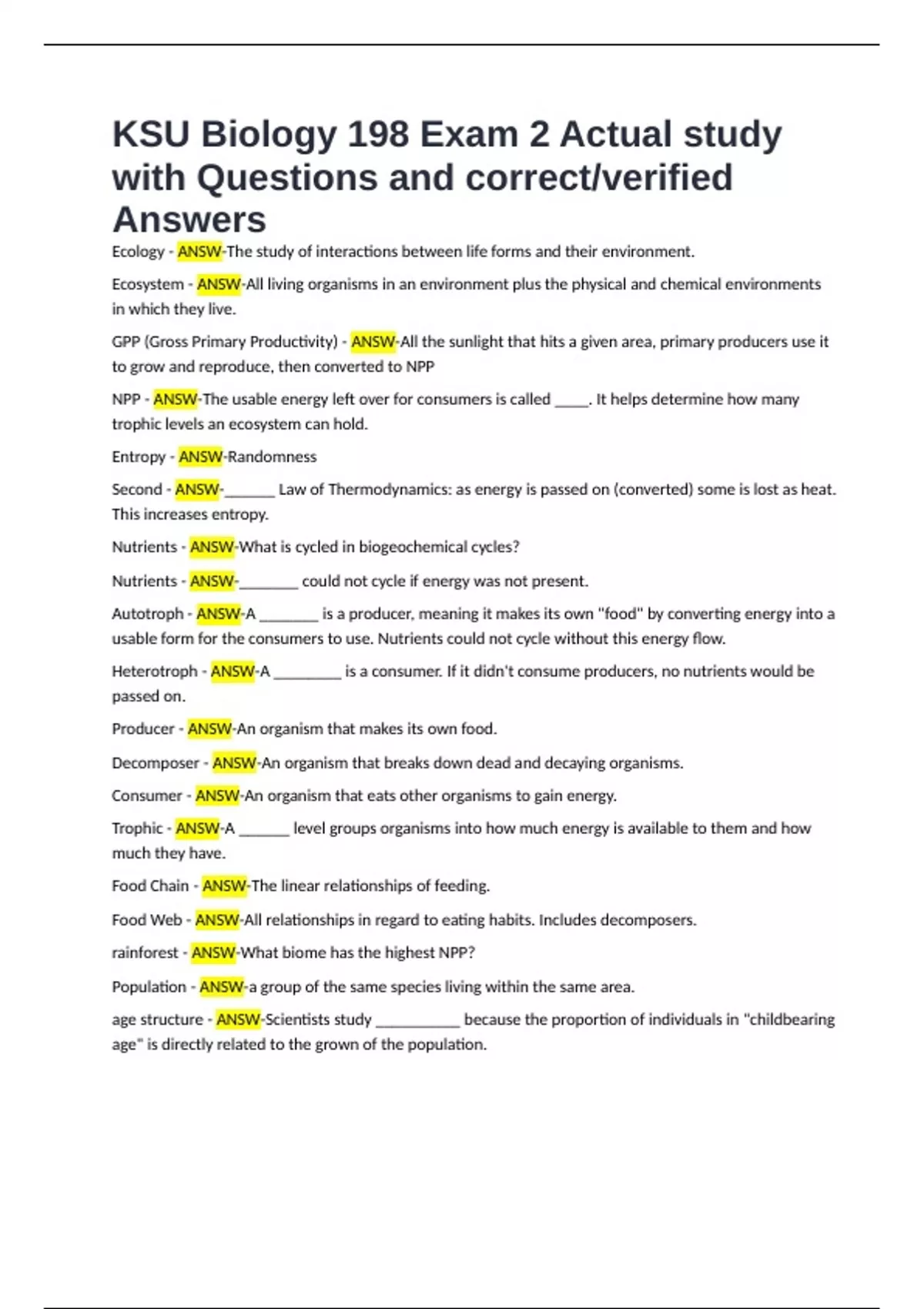 Ecology - ANSW-The study of interactions between life forms and their environment.