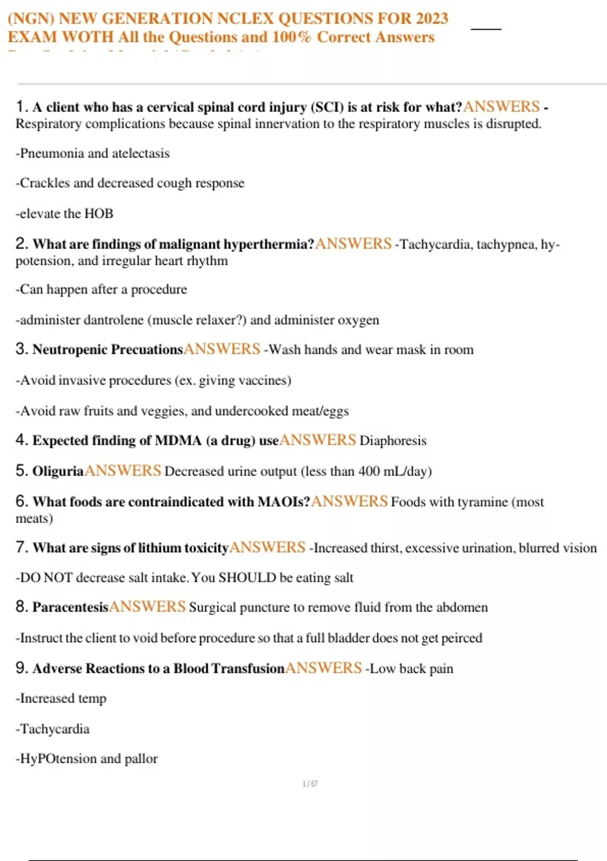 (NGN) NEW GENERATION NCLEX QUESTIONS FOR 2023 EXAM WOTH All the Questions and 100% Correct Answers Best Studying Material (Graded A+)