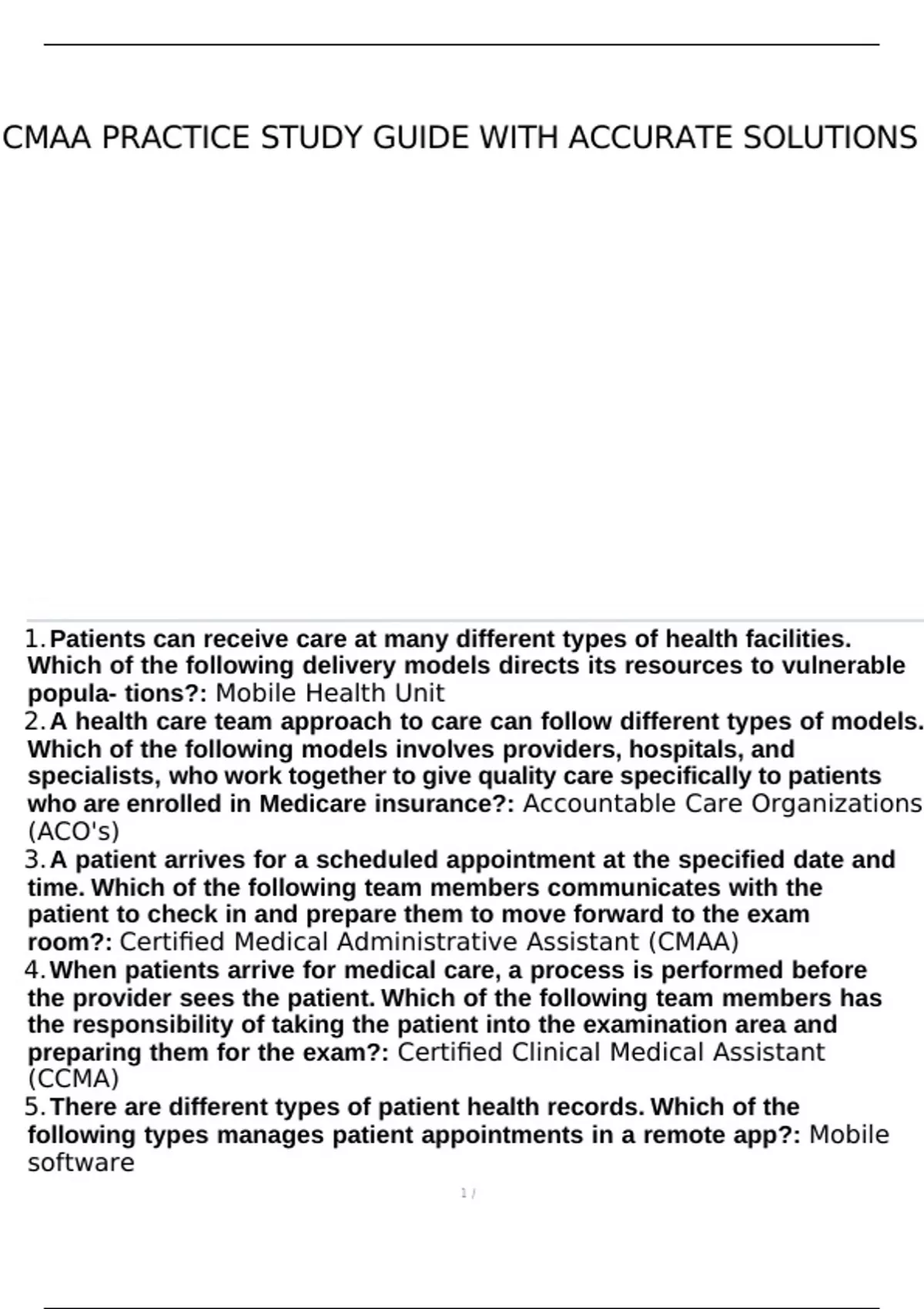 CMAA PRACTICE STUDY GUIDE WITH ACCURATE SOLUTIONS
