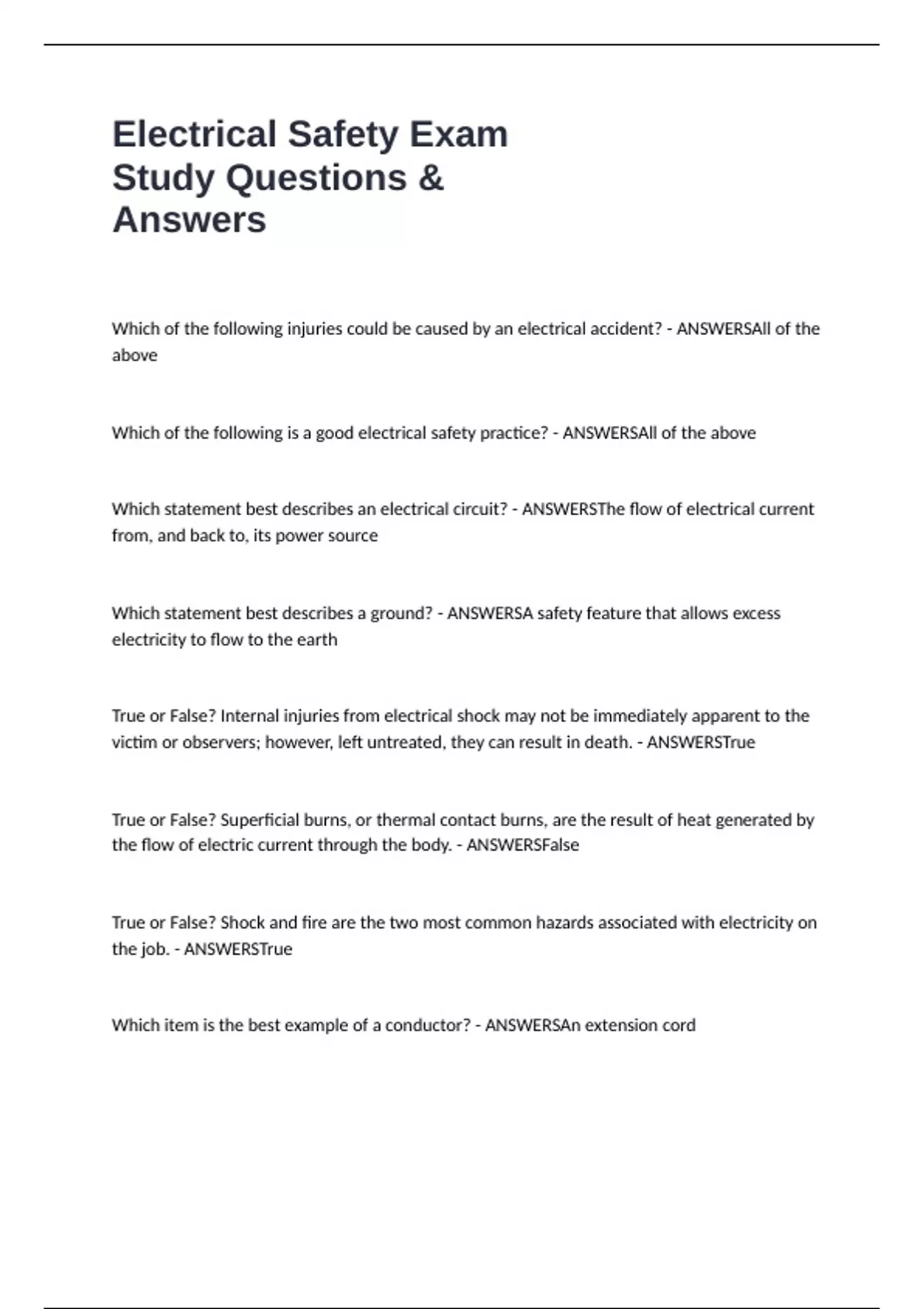 True or False? Shock and fire are the two most common hazards associated with electricity on