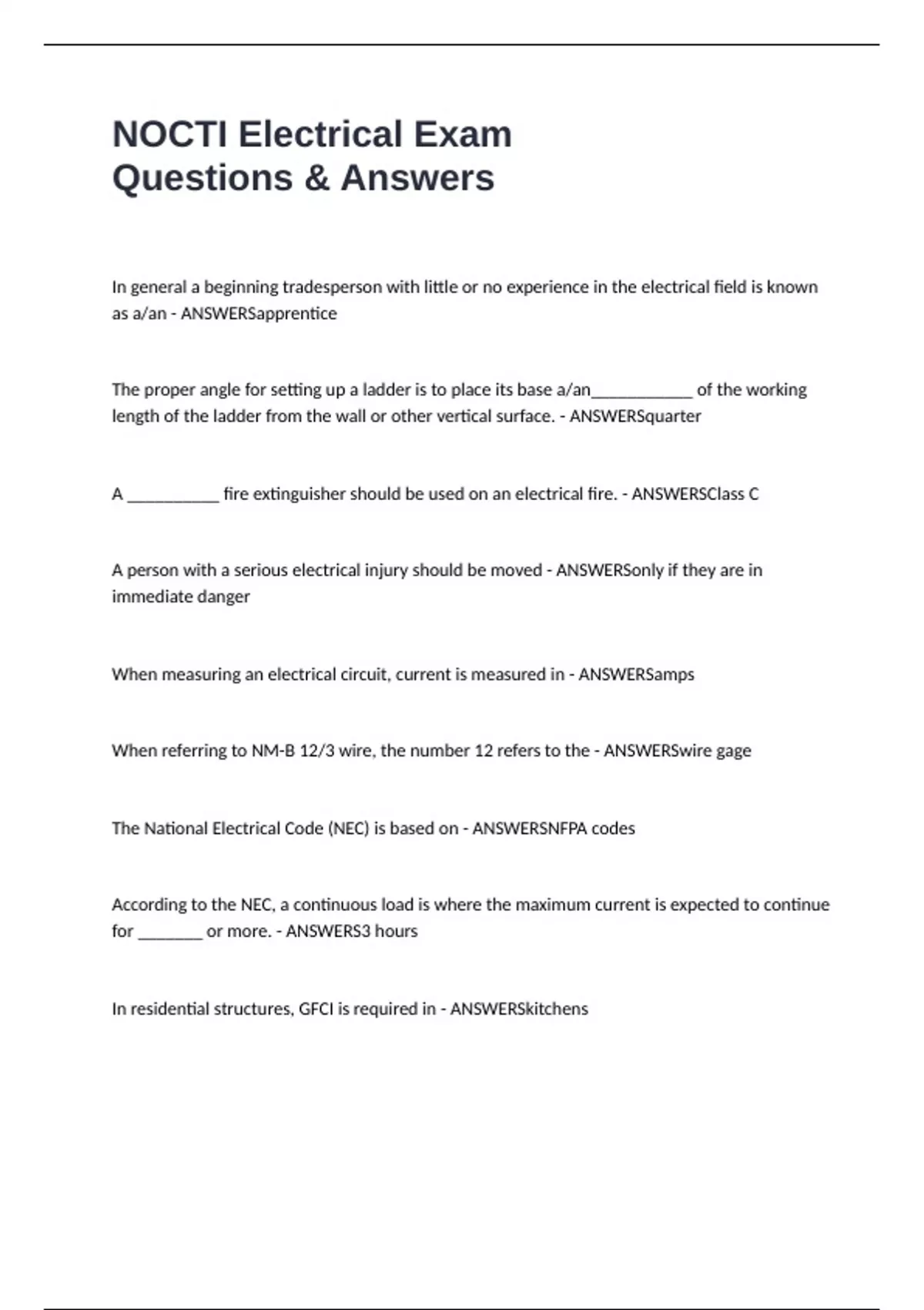 NOCTI Electrical Exam Questions & Answers