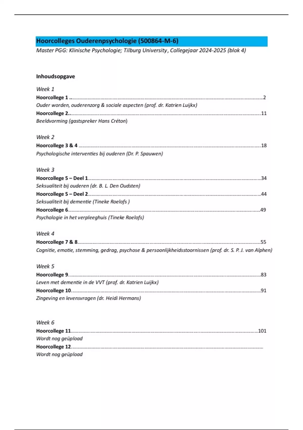 Master PGG: Klinische Psychologie; Tilburg University, Collegejaar 2024-2025 (blok 4)