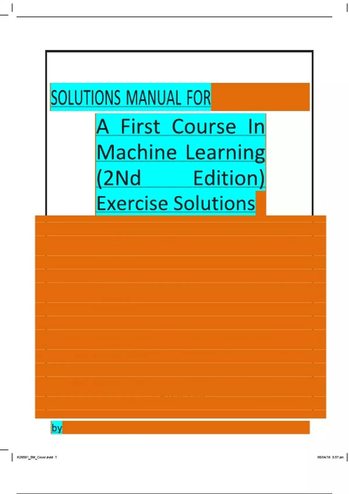 SOLUTIONS MANUAL FOR A FIRST COURSE IN MACHINE LEARNING (2ND EDITION) EXERCISE & SOLUTIONS BY SIMON ROGERS AND MARK GIROLAMI SOLUTIONS MANUAL FOR A FIRST COURSE IN MACHINE LEARNING (2ND EDITION) EXERCISE & SOLUTIONS BY SIMON ROGERS AND MARK GIROLAMI