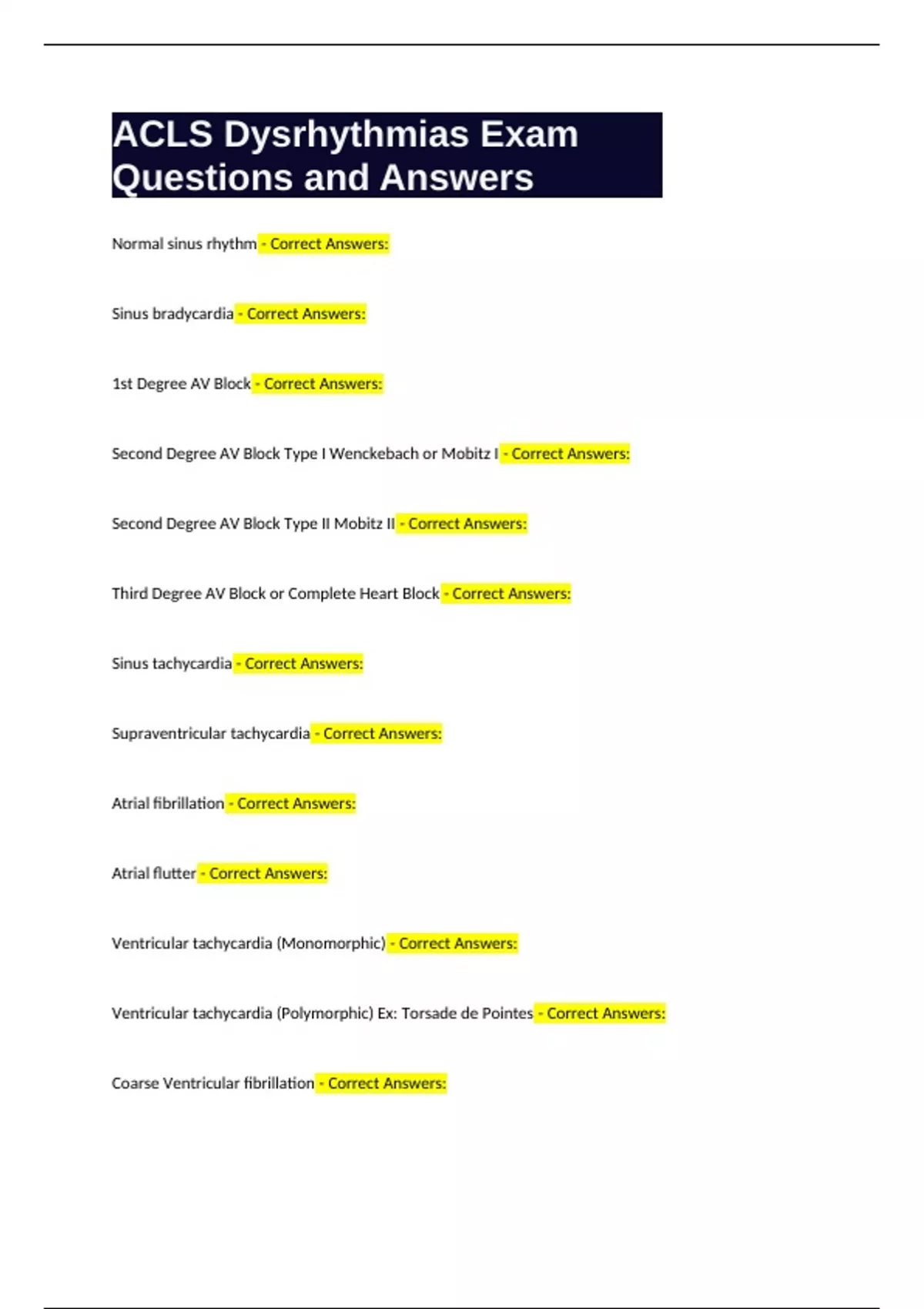 Ventricular tachycardia (Polymorphic) Ex: Torsade de Pointes - Correct Answers: