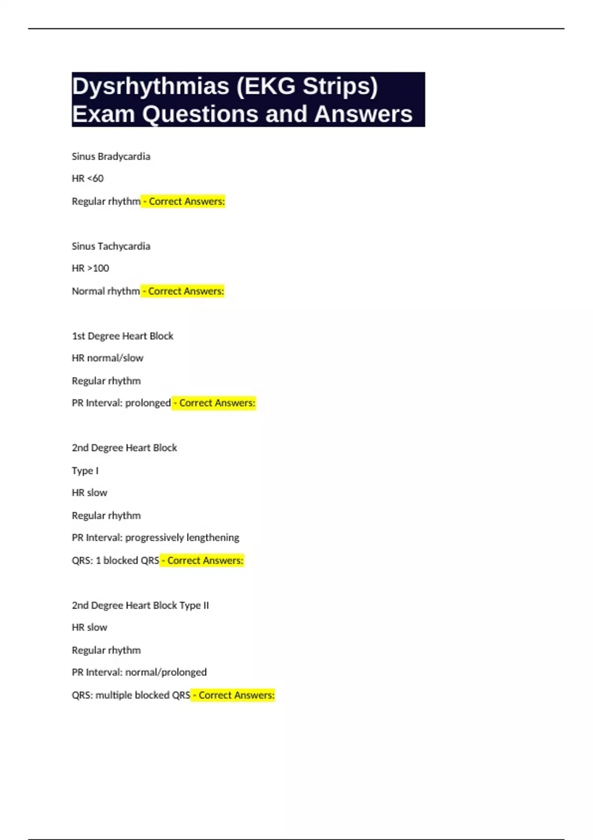 Dysrhythmias (EKG Strips) Exam Questions and Answers.