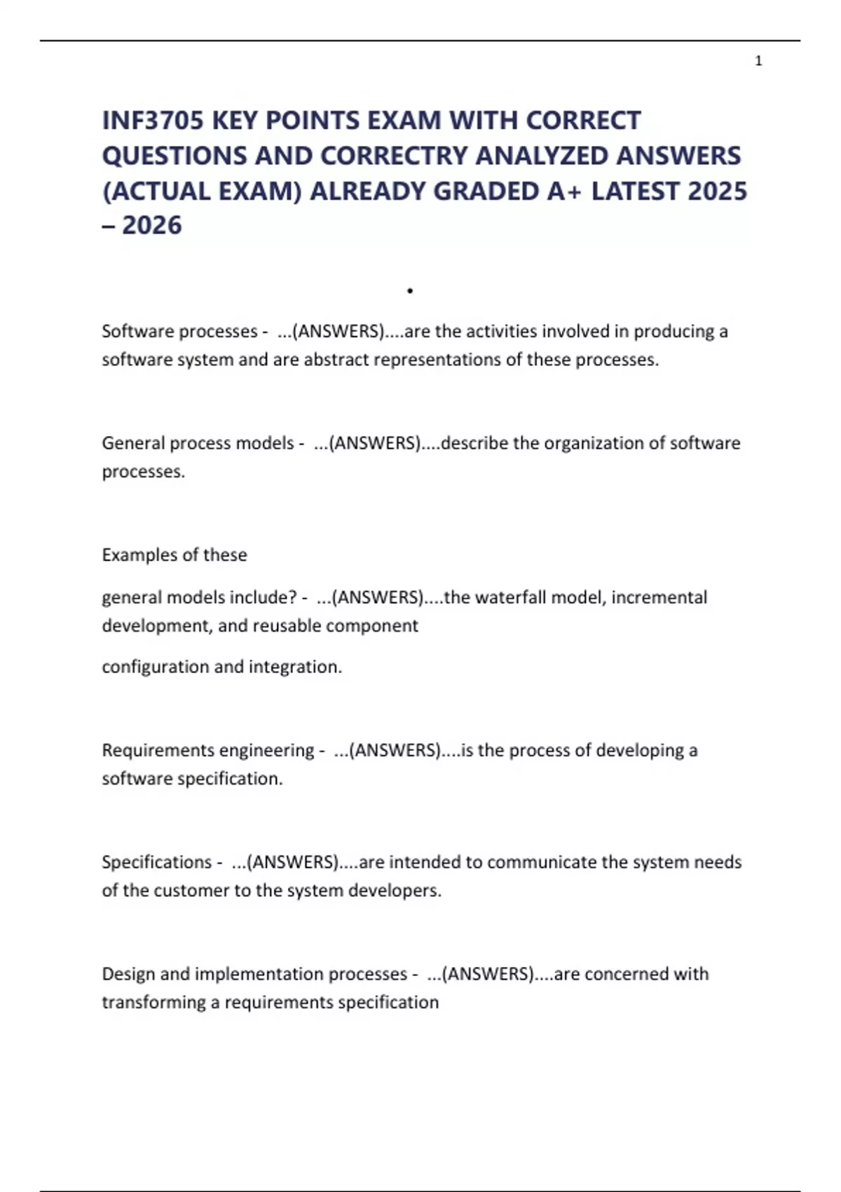 INF3705 KEY POINTS EXAM WITH CORRECT QUESTIONS AND CORRECTRY ANALYZED ANSWERS (ACTUAL EXAM) ALREADY GRADED A+ LATEST 2025 – 2026