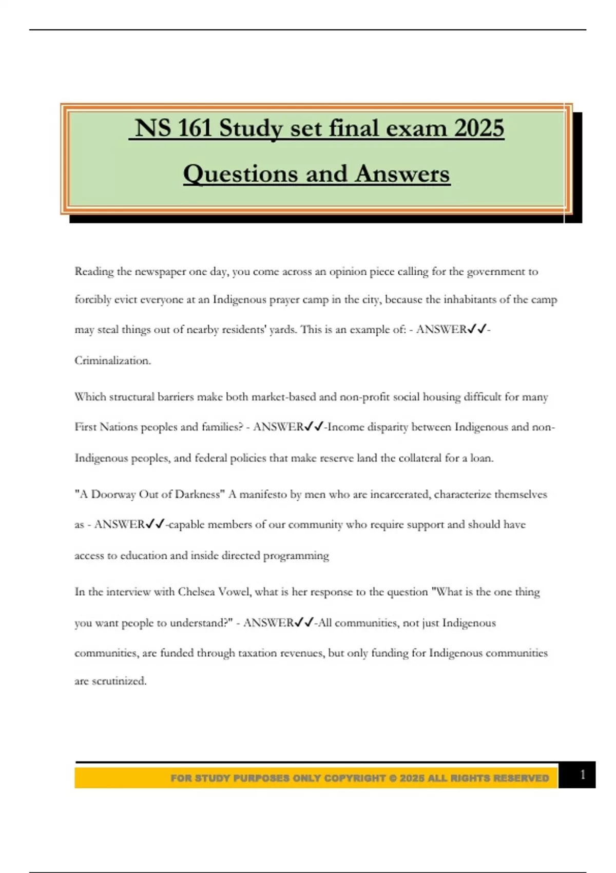 FOR STUDY PURPOSES ONLY COPYRIGHT © 2025 ALL RIGHTS RESERVED 1