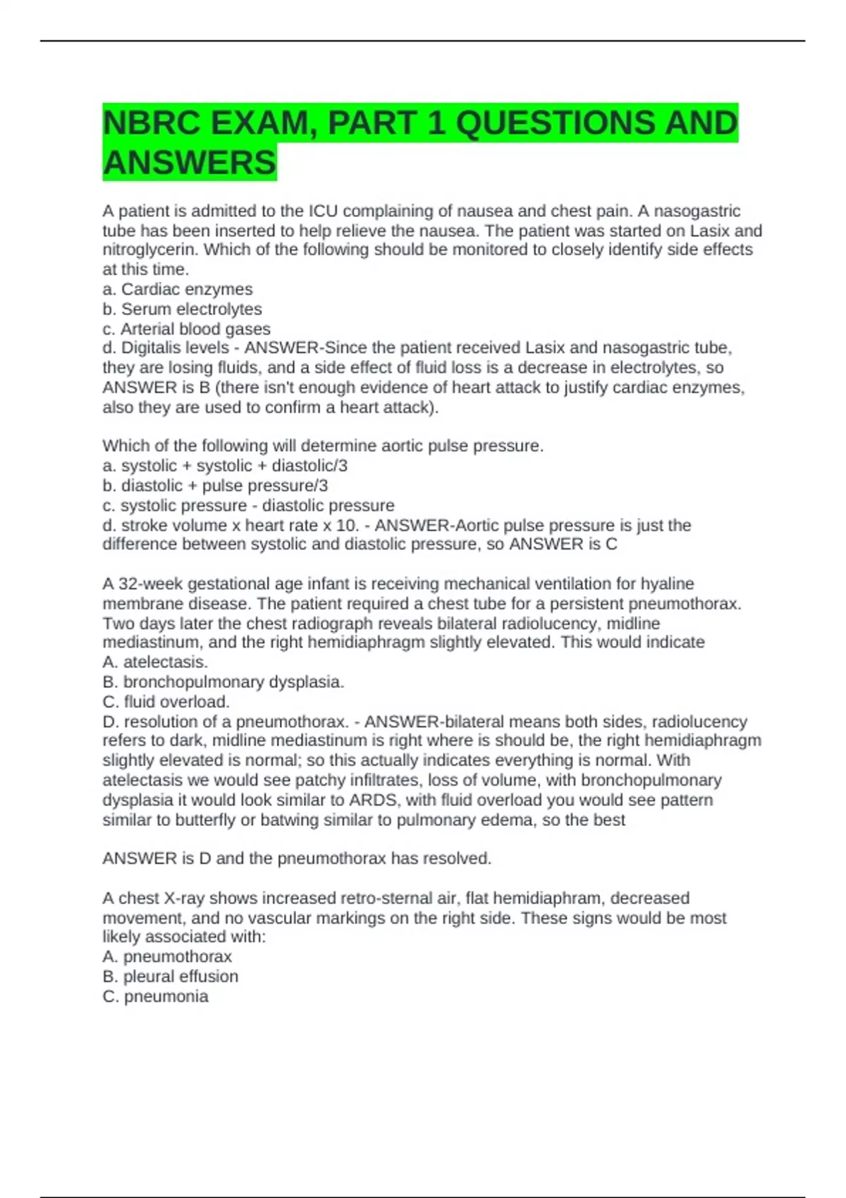 D. resolution of a pneumothorax. - ANSWER-bilateral means both sides, radiolucency