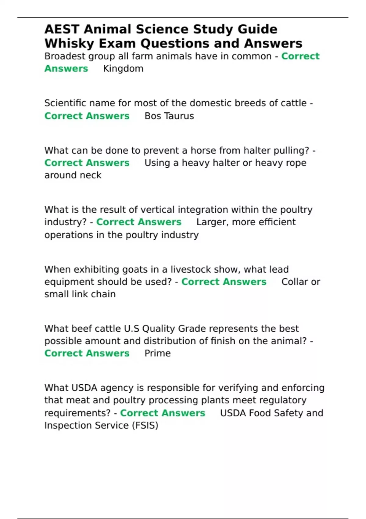 AEST Animal Science Study Guide Whisky Exam Questions and Answers
