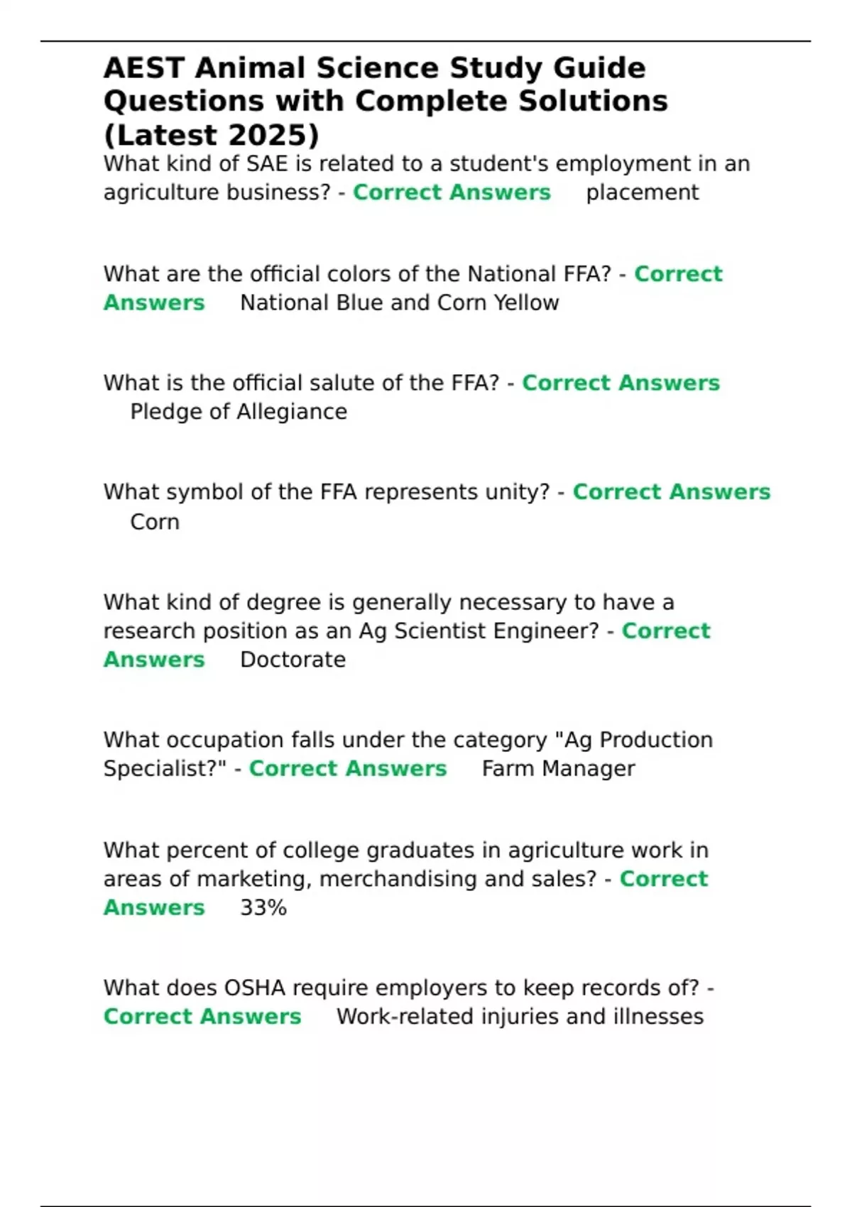 AEST Animal Science Study Guide Questions with Complete Solutions (Latest 2025)