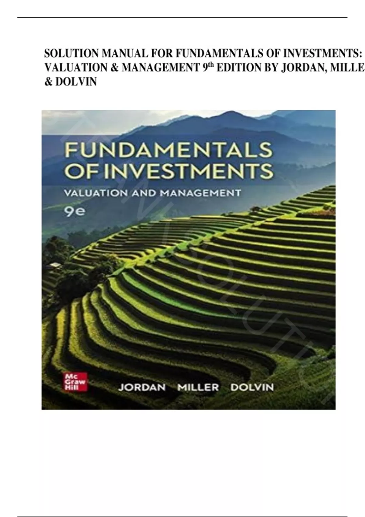 Fundamentals of Investments: Valuation and Management 9th Edition by Bradford D. Jordan, Thomas Miller & Steve Dolvin Solution Manual |ISBN: 9781260013979| Guide A+