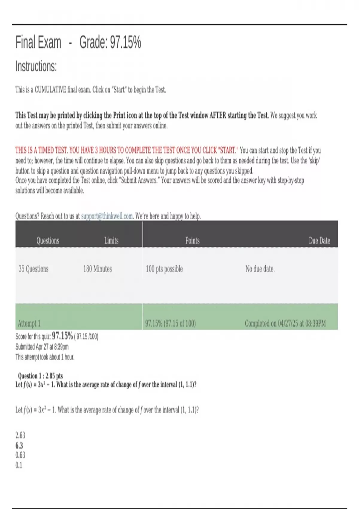 Attempt 1 97.15% (97.15 of 100) Completed on 04/27/25 at 08:39PM