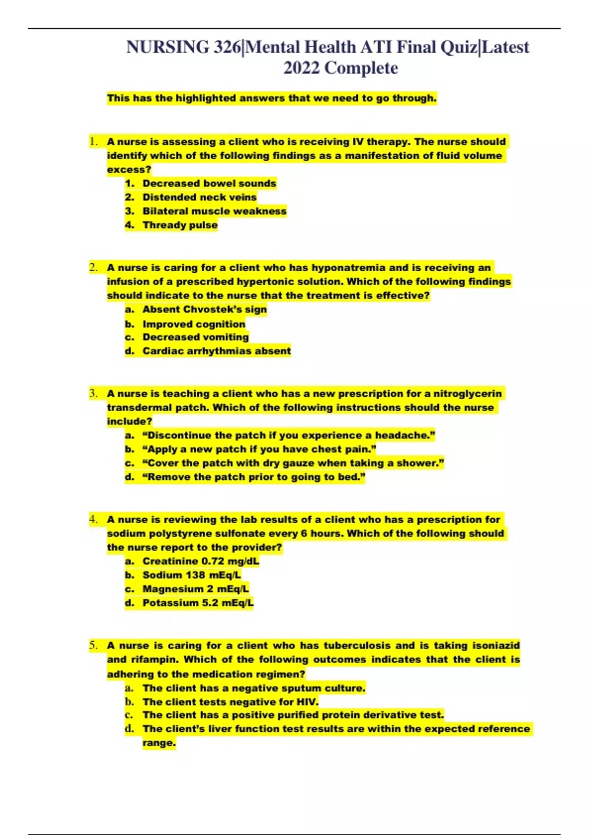NURSING 326|Mental Health ATI Final Quiz|Latest