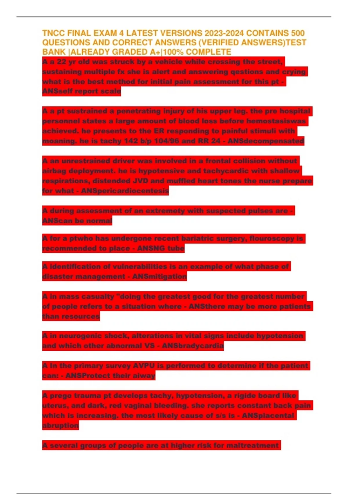 ,TNCC FINAL EXAM 4 LATEST VERSIONS 2023-2024 CONTAINS 500
