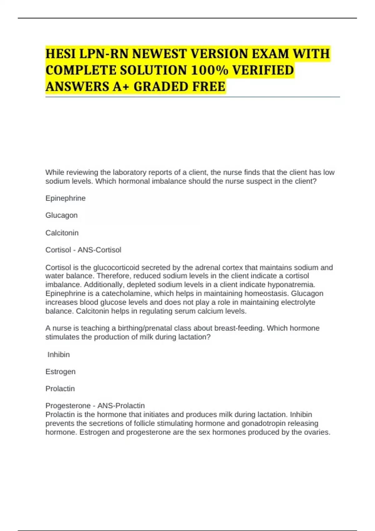 water balance. Therefore, reduced sodium levels in the client indicate a cortisol