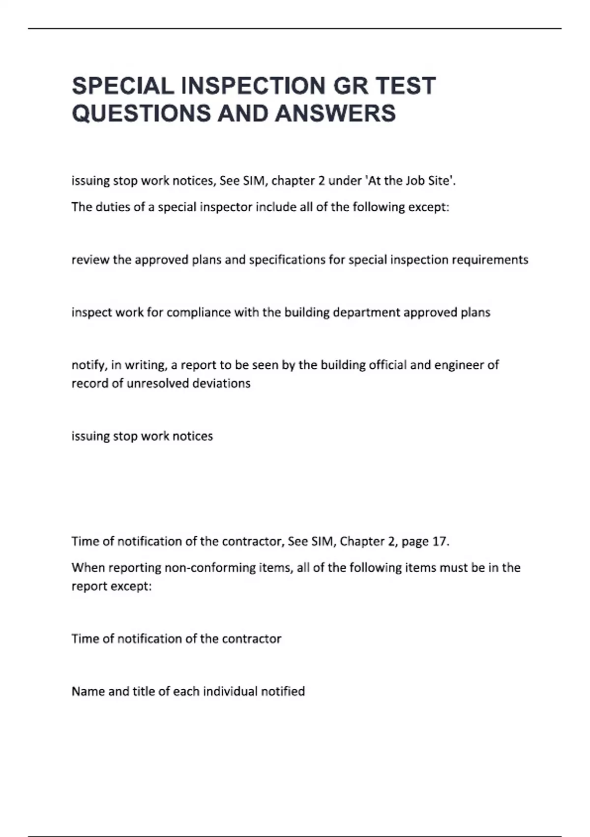 SPECIAL INSPECTION GR TEST QUESTIONS WITH ACTUAL ANSWERS {100% CORRECT} RATED A+ 100% DISTINCTION GUARANTEE.