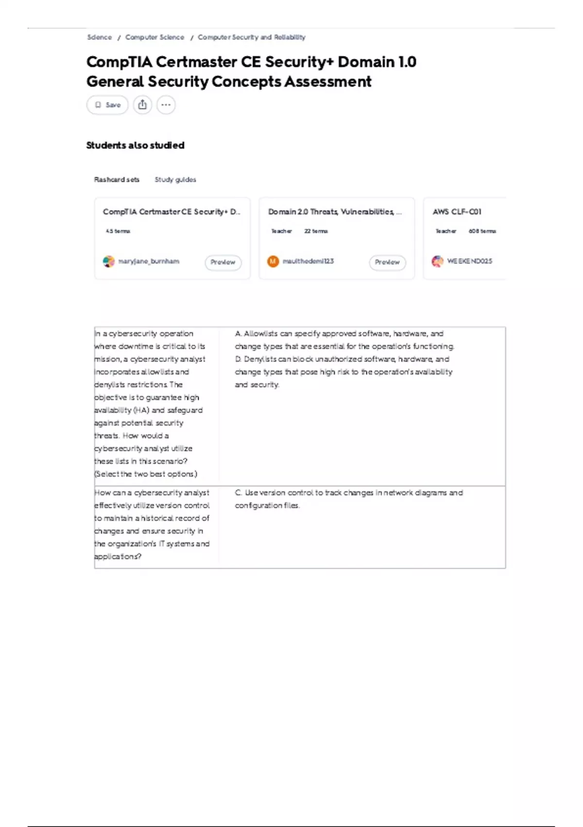 CompTIA Certmaster CE Security+ D... Domain 2.0 Threats, Vulnerabilities, ... AWS CLF-C01