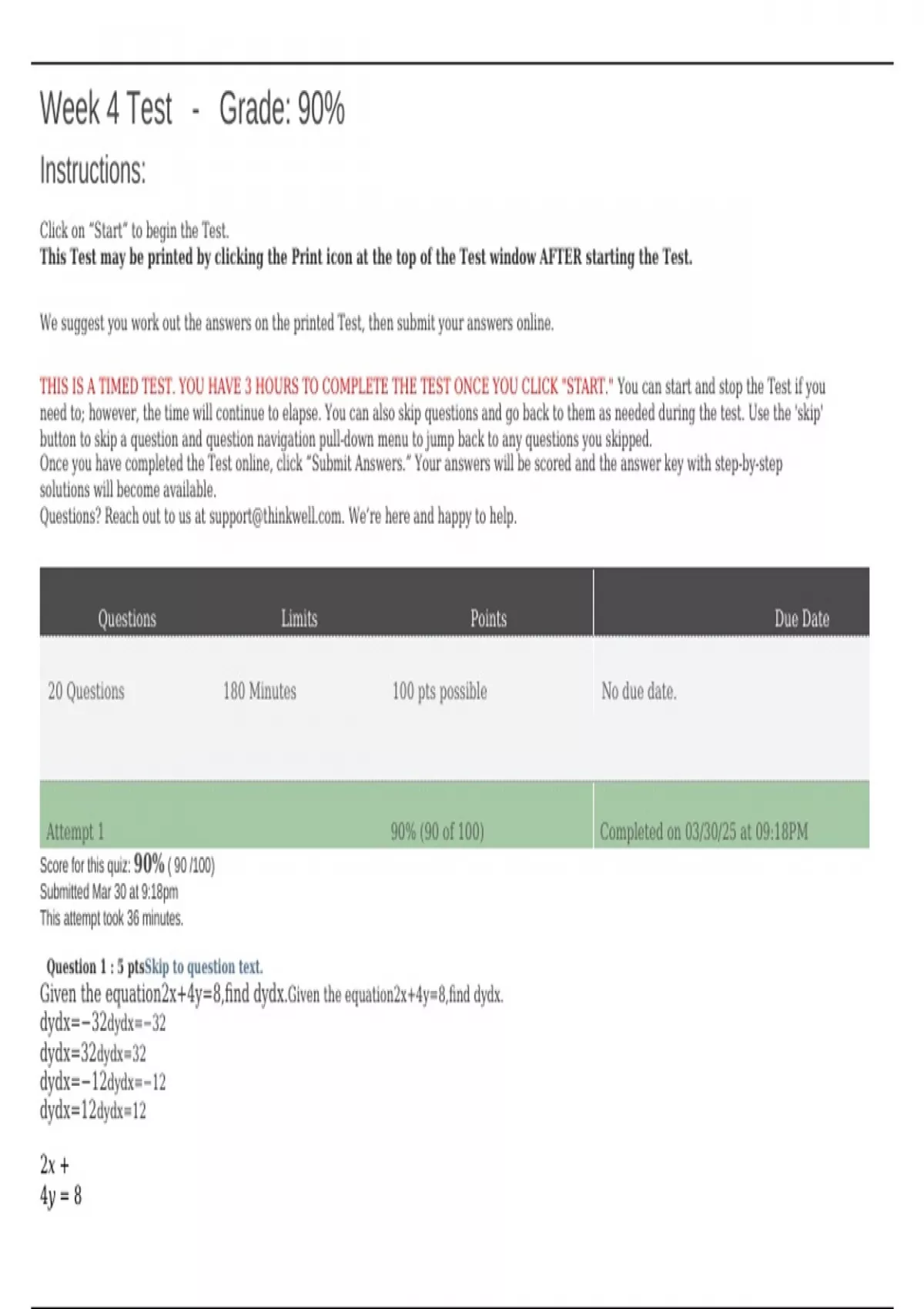 Attempt 1 90% (90 of 100) Completed on 03/30/25 at 09:18PM