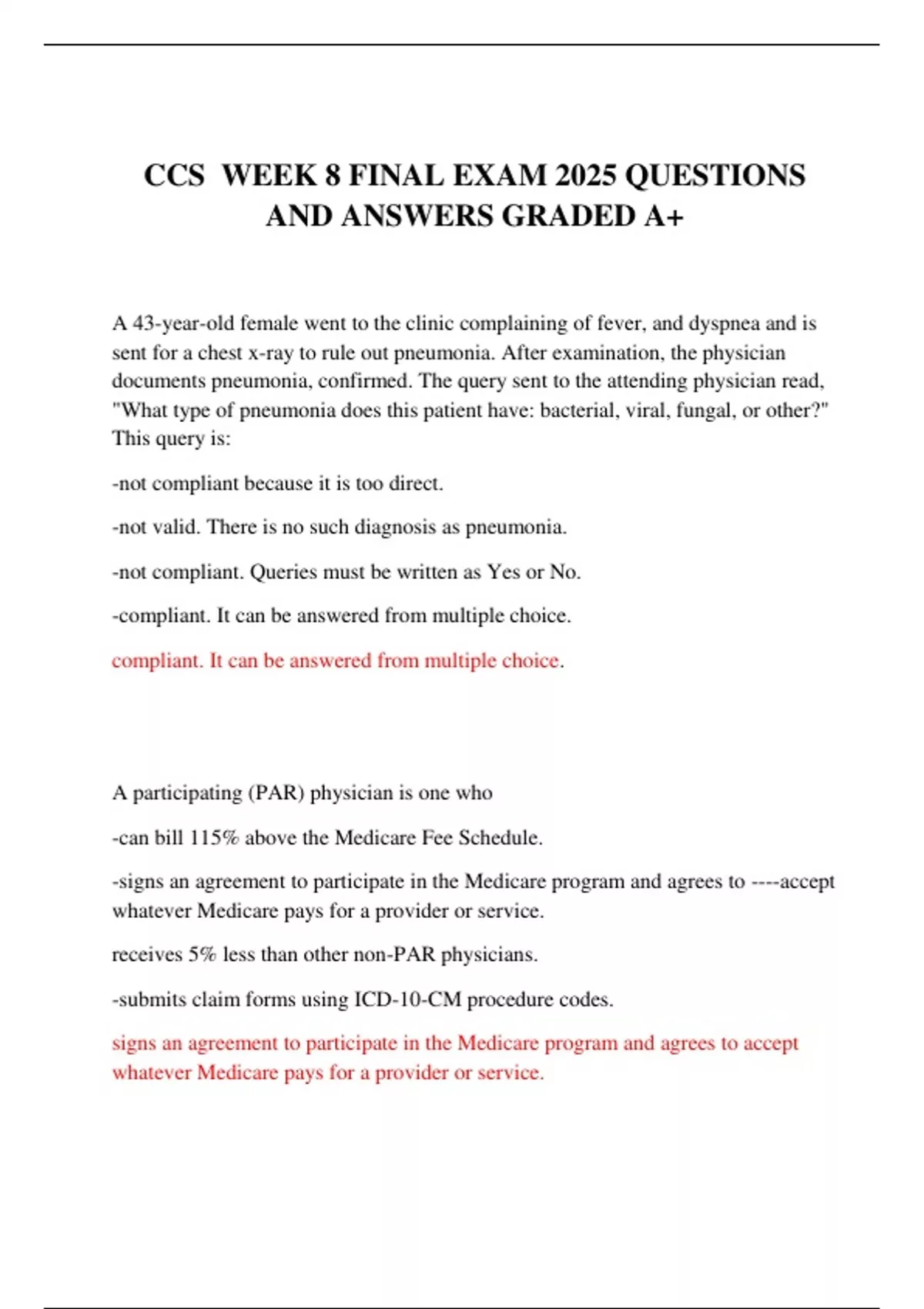CCS WEEK 8 FINAL EXAM 2025 QUESTIONS AND ANSWERS GRADED A+