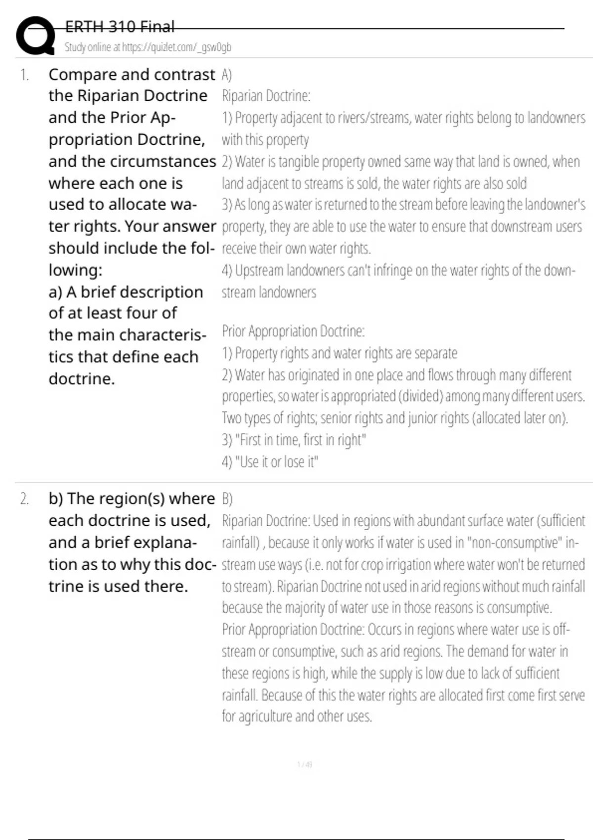 Comment: Riparian Doctrine Mostly used in the eastern U.S. (-0.25 point)