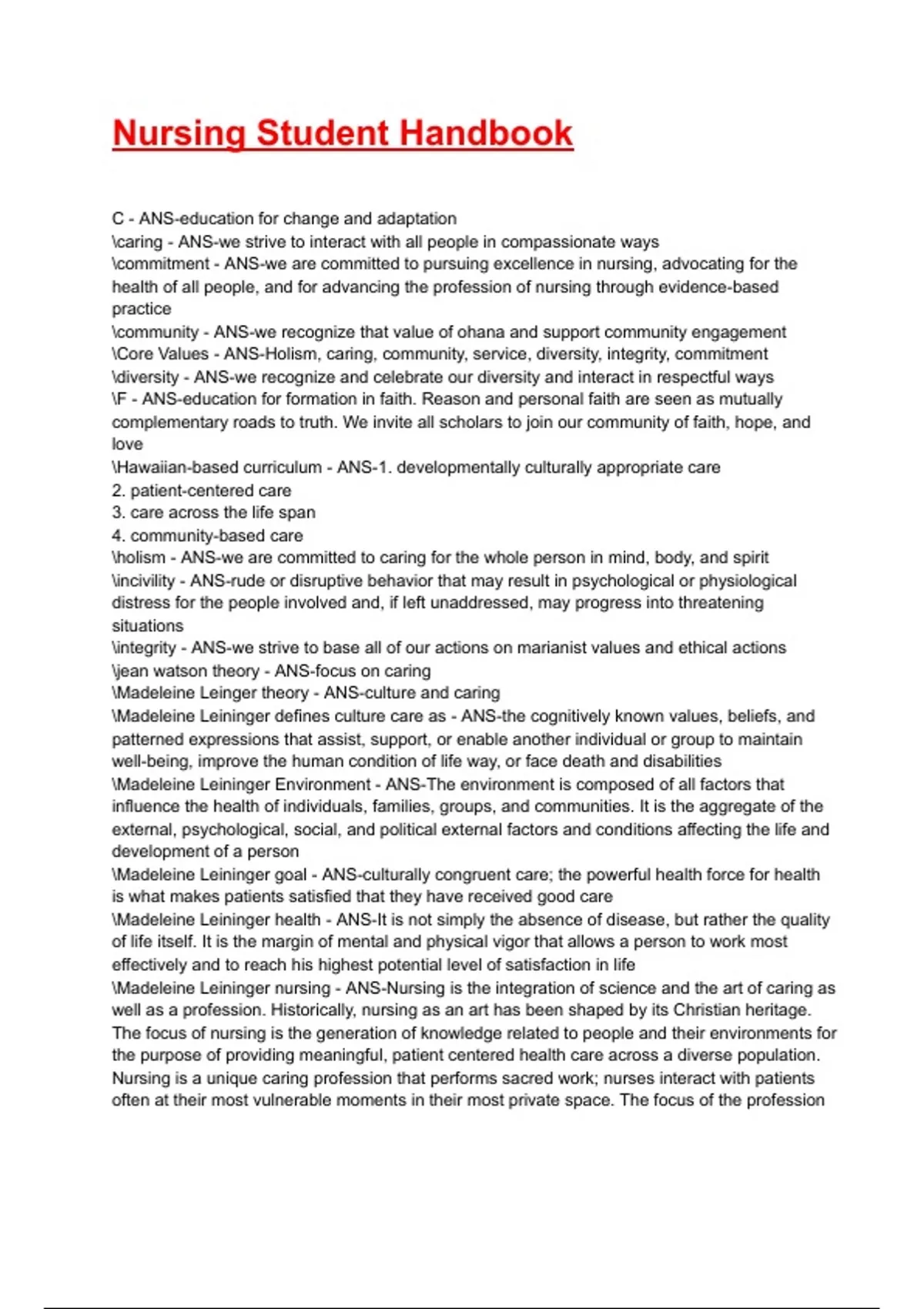 Nursing Student Handbook
