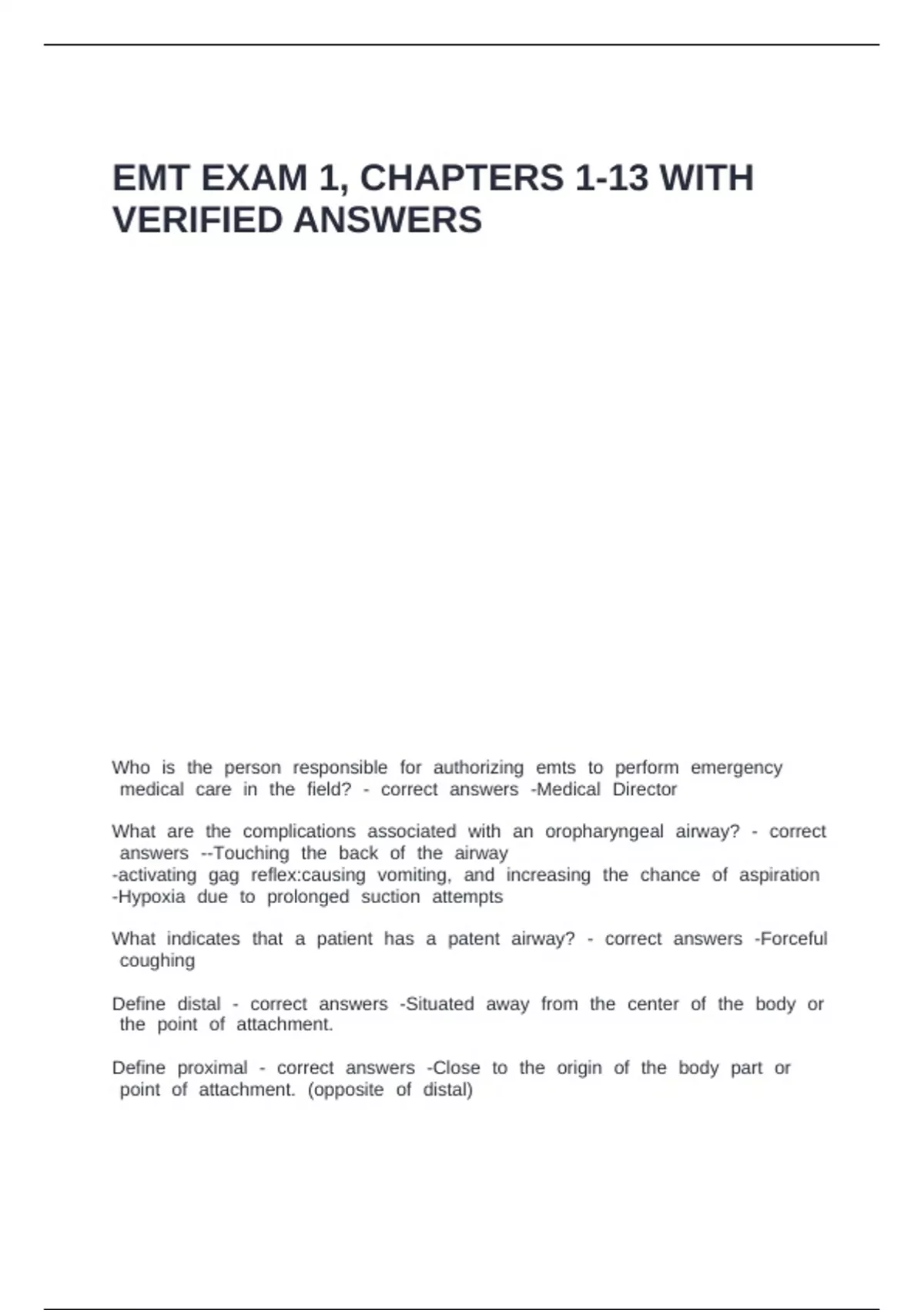 EMT EXAM 1, CHAPTERS 1-13 WITH