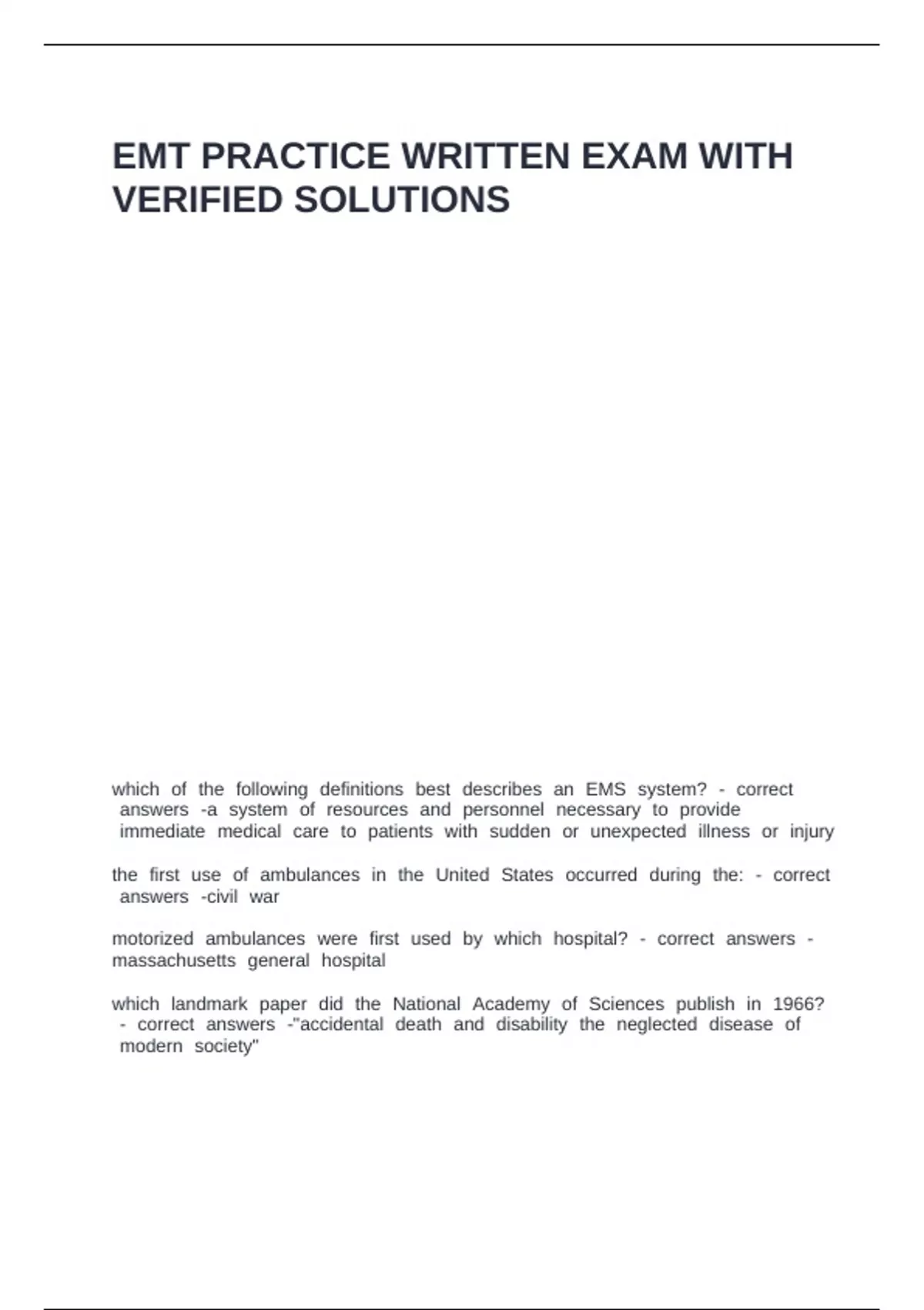 EMT PRACTICE WRITTEN EXAM WITH