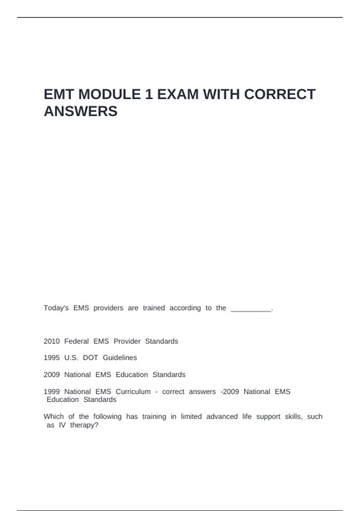 EMT MODULE 1 EXAM WITH CORRECT ANSWERS