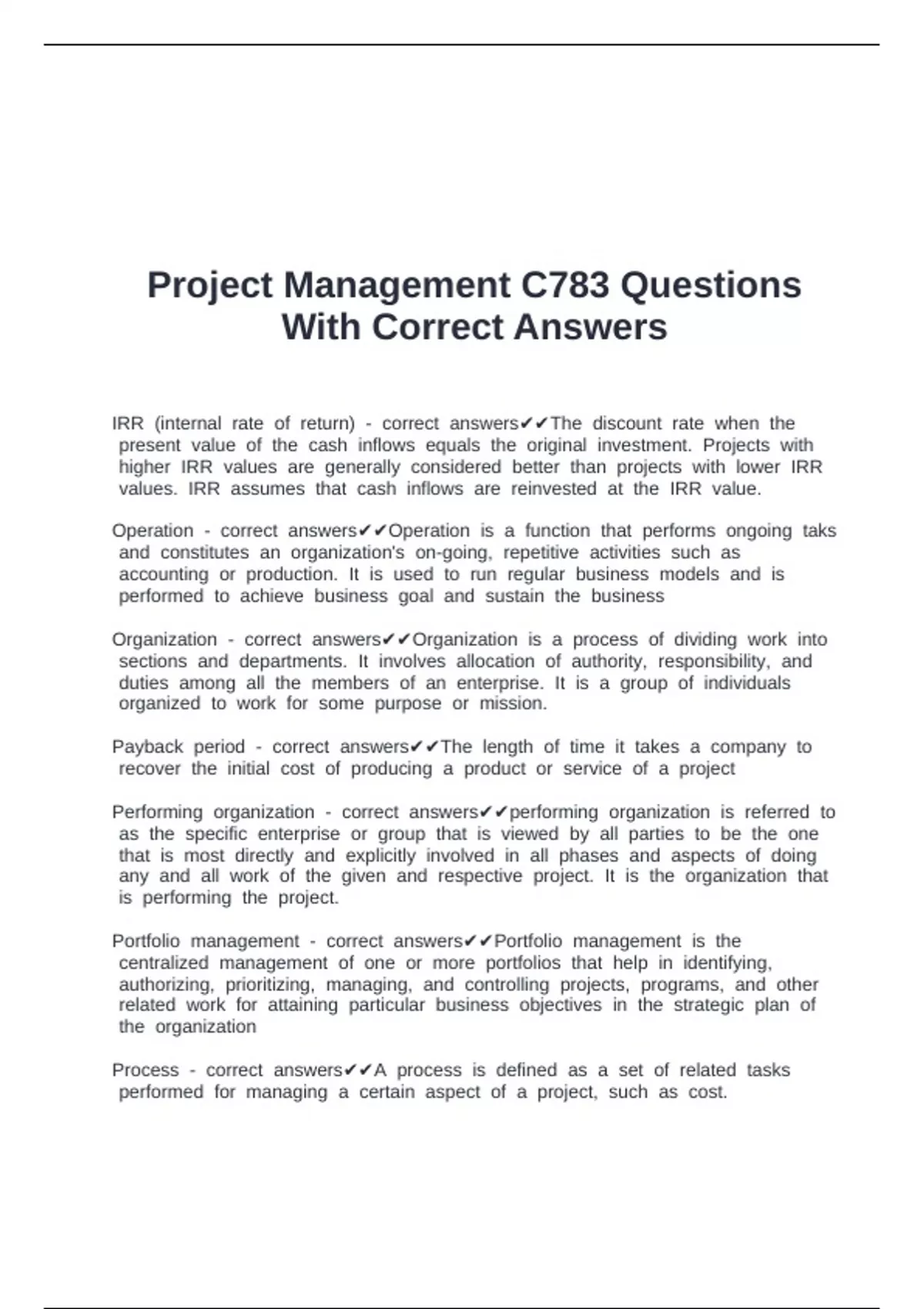 Project Management C783 Questions