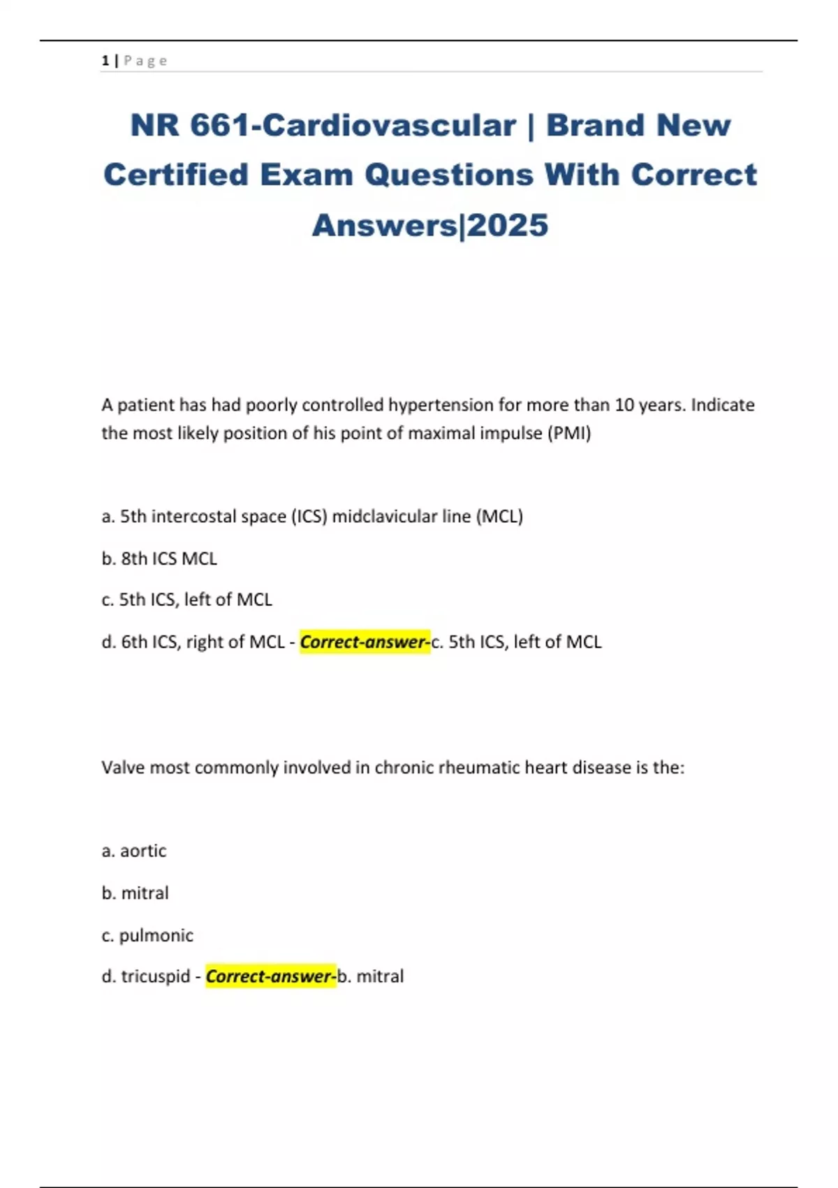 Certified Exam Questions With Correct