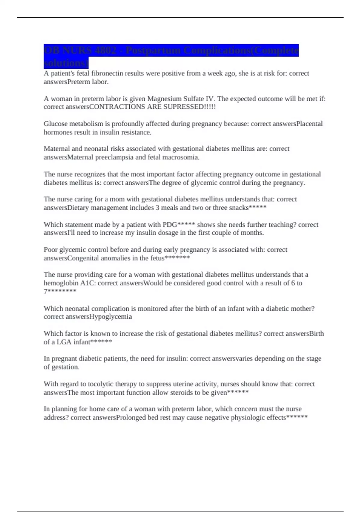 correct answersHypoglycemia