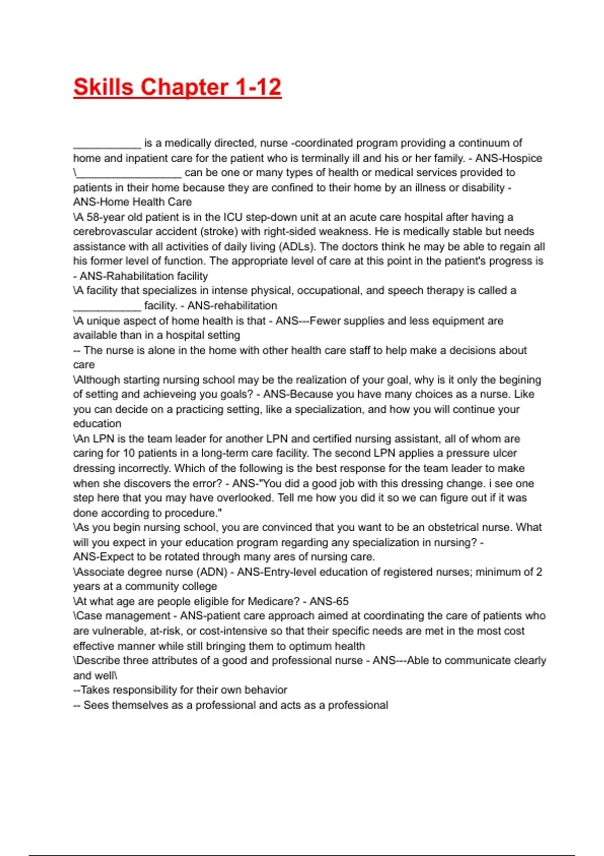 Skills Chapter 1-12 Exam 2025/2026 Questions With Completed Solutions.