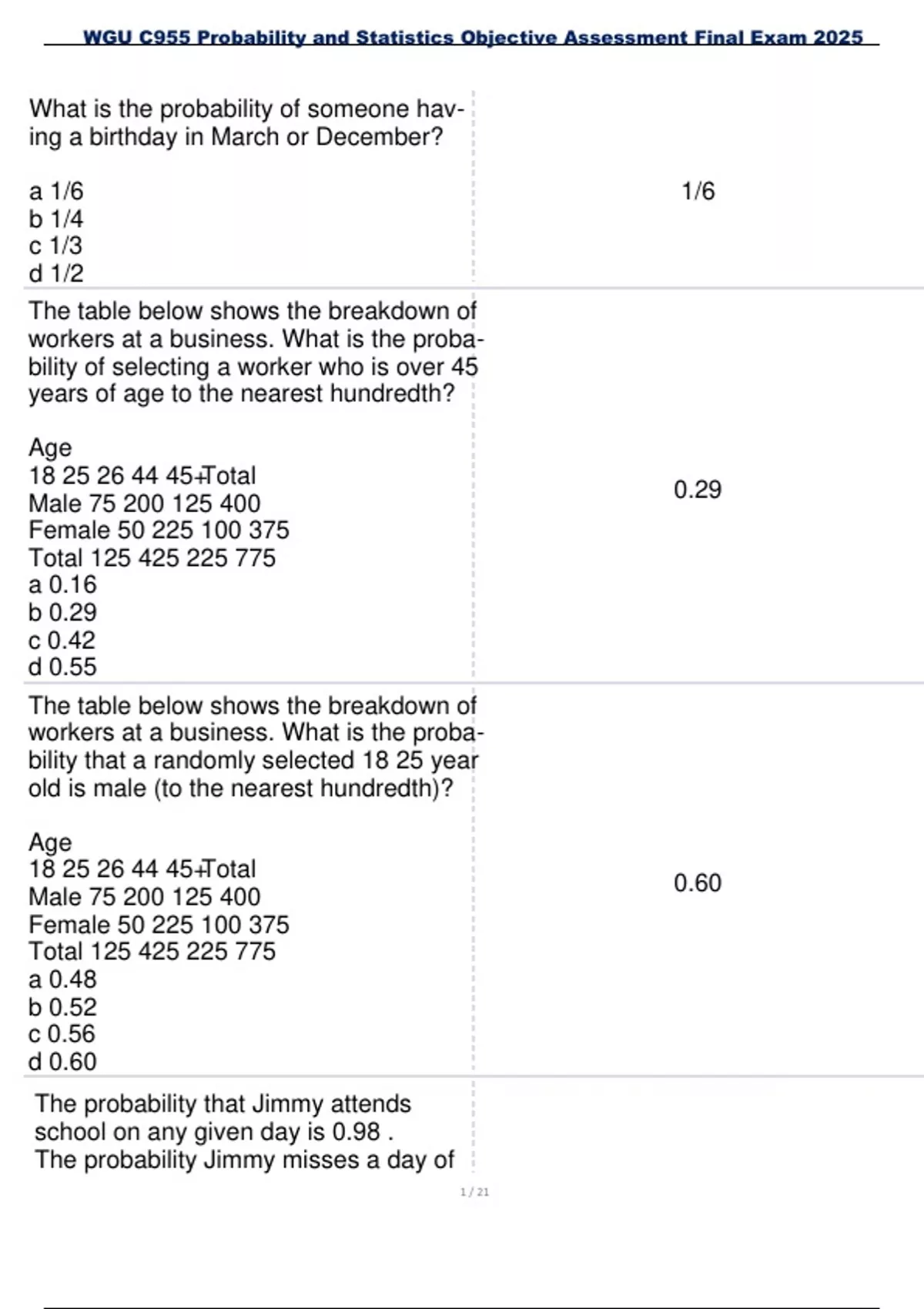 , WGU C955 Probability and Statistics Objective Assessment Final Exam 2025