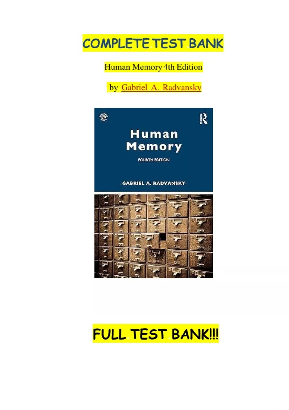 ,TEST BANK Human Memory 4th Edition by Gabriel Radvansky
