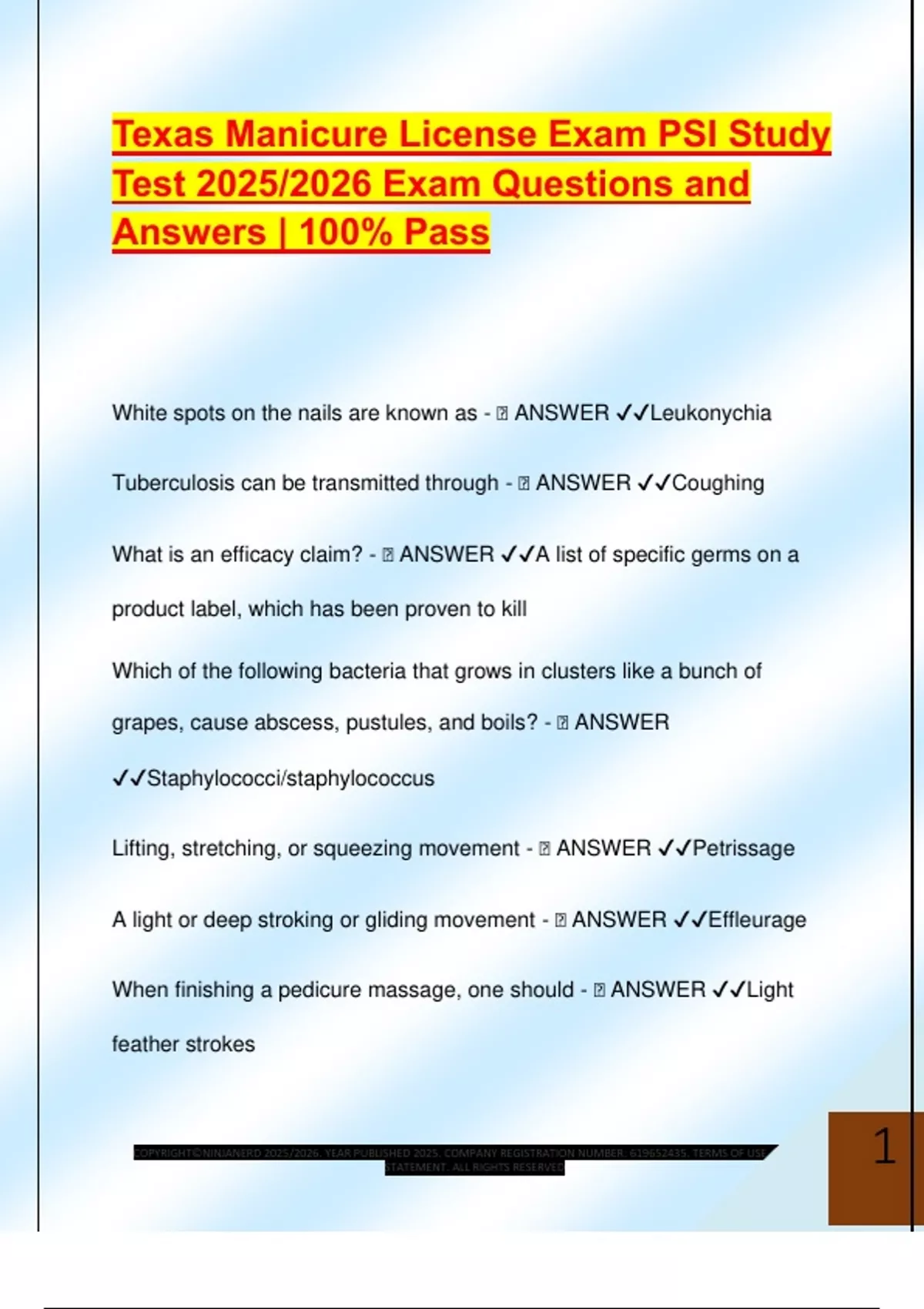 Texas Manicure License Exam PSI Study