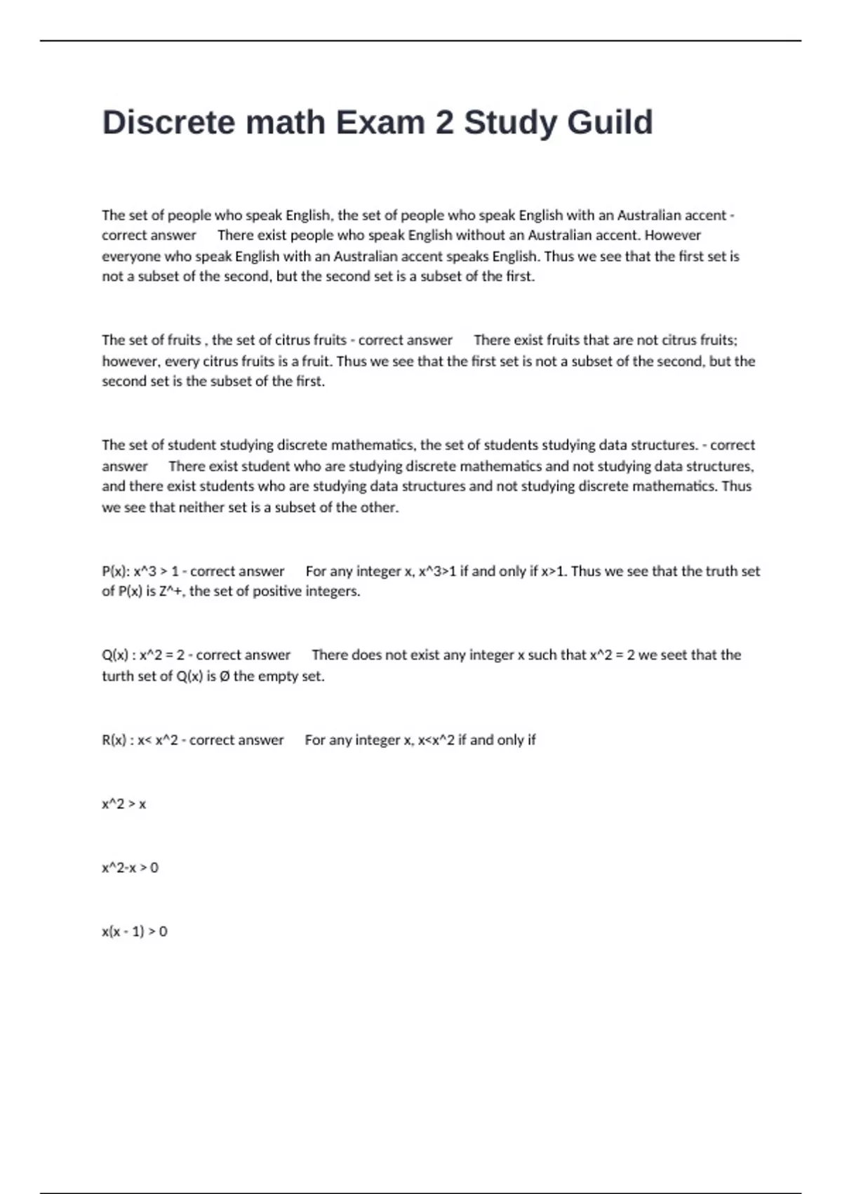 Discrete math Exam 2 Study Guild Questions With 100% Verified Correct Answers.
