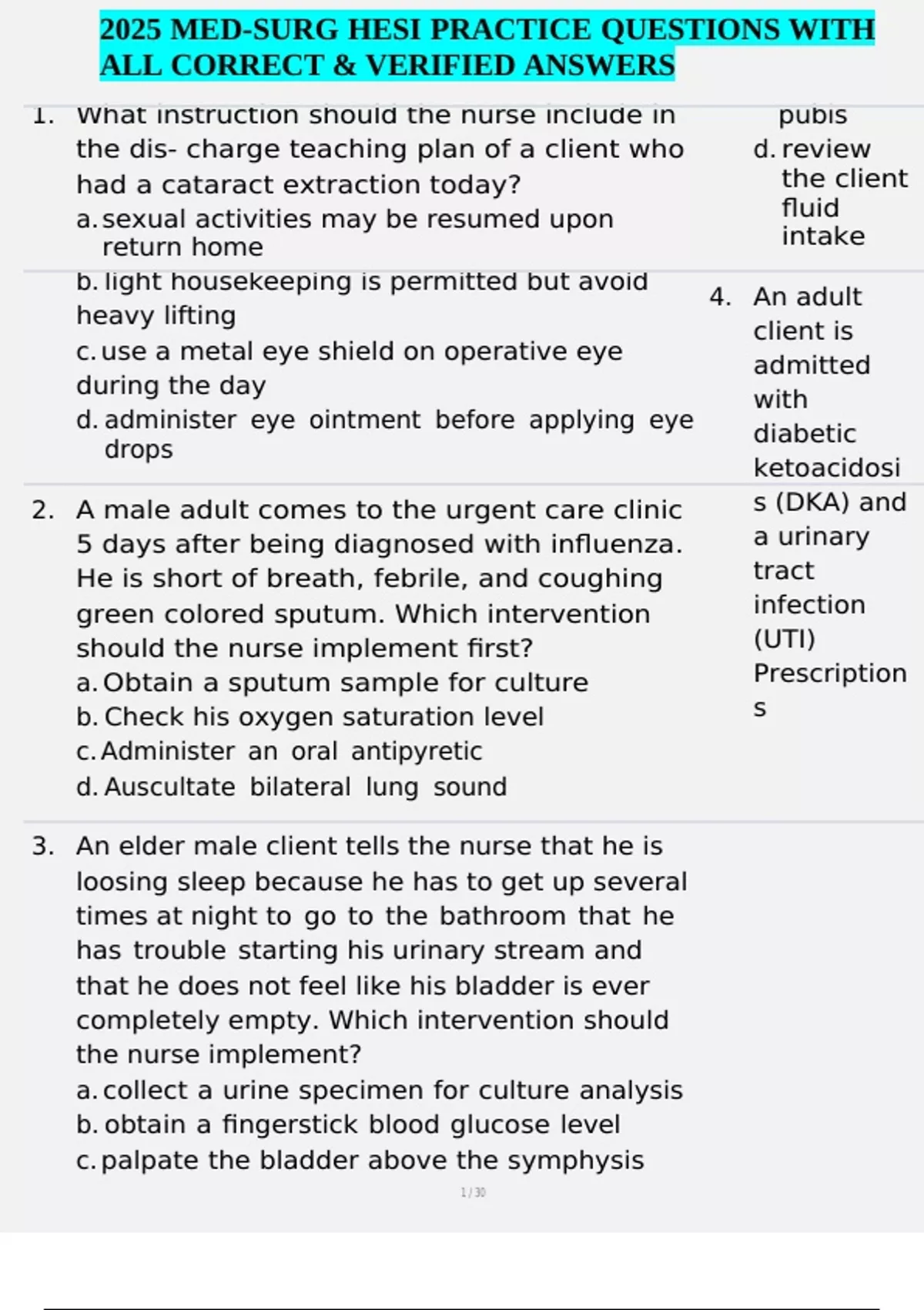 , 2025 MED-SURG HESI PRACTICE QUESTIONS WITH