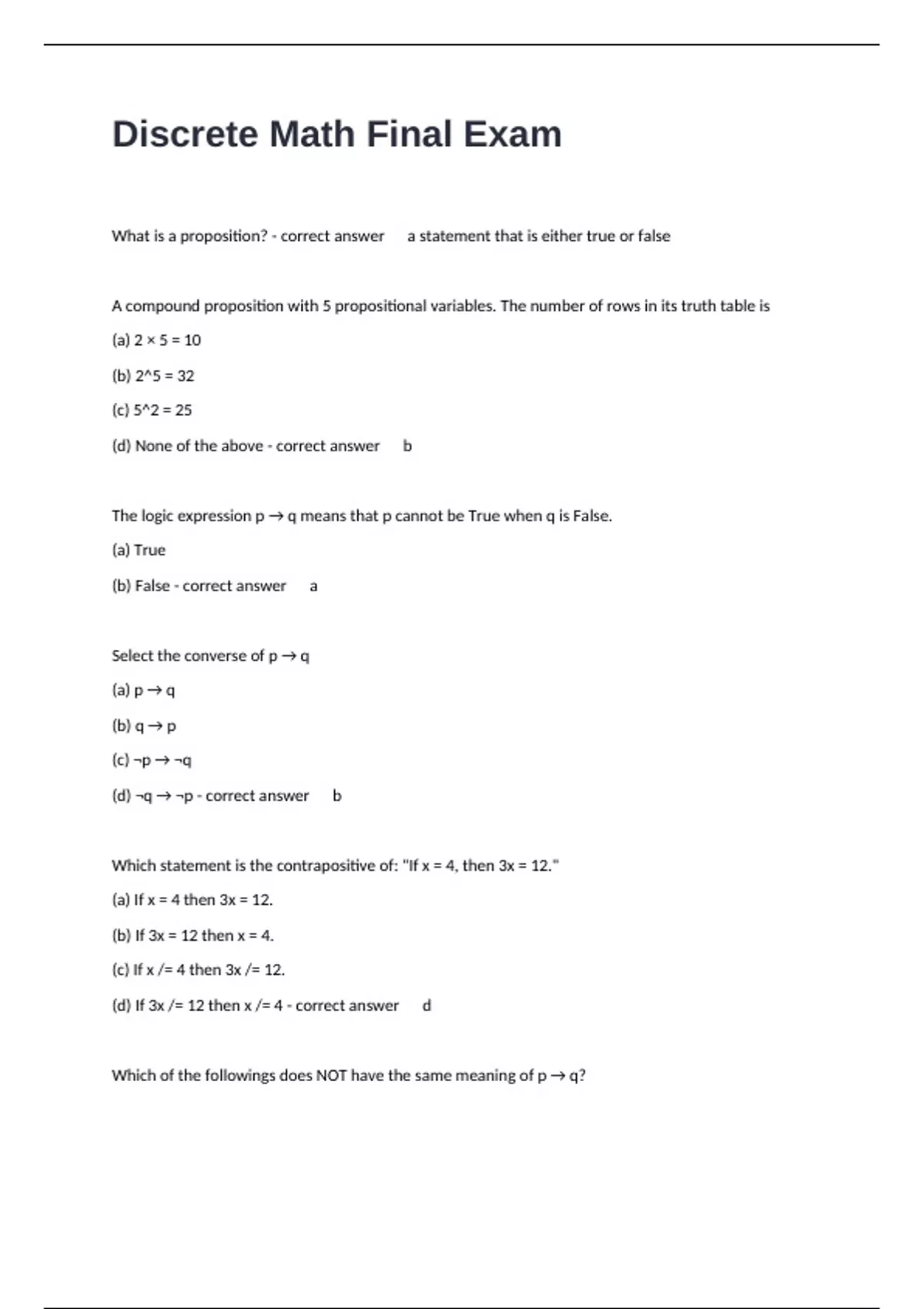 Discrete Math Final Exam Questions With 100% Correct And Verified Answers.