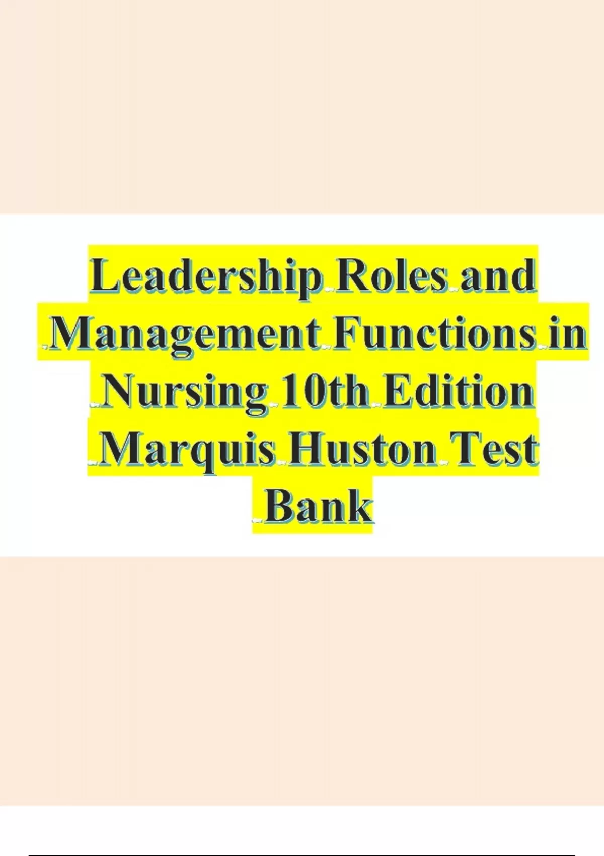 Test Bank For Leadership Roles and Management Functions in Nursing Theory and Application 10th Edition by Bessie L. Marquis, Carol Huston ISBN;9781975139216 All Chapters 1-25 Fully Covered||COMPLETE GUIDE A+||.